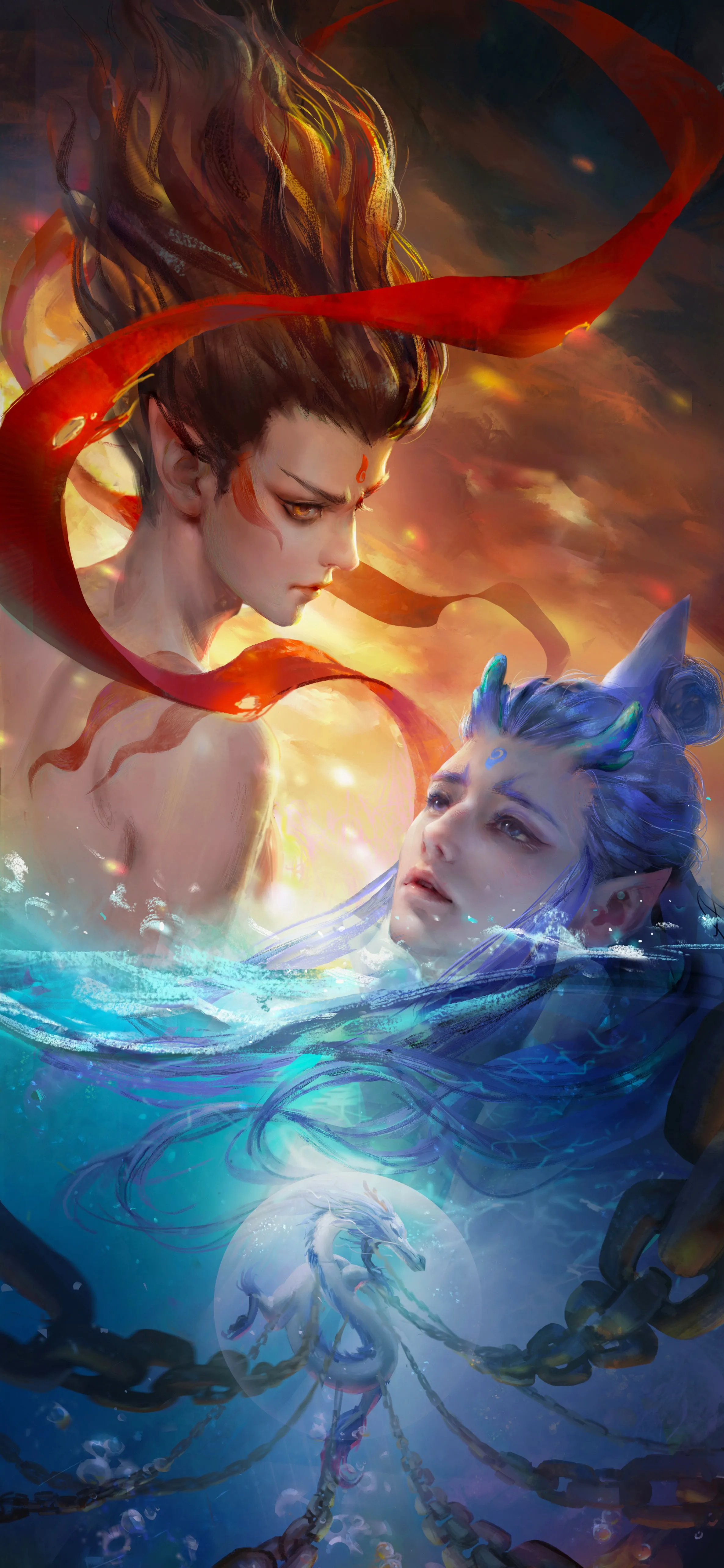 Nezha, Ao Bing, H屿Tianling, Dragon, 5k, Mobile Phone, Wallpaper, Magic Child Disturbing the Sea, Mobile Phone Wallpaper, 1080P Wallpaper