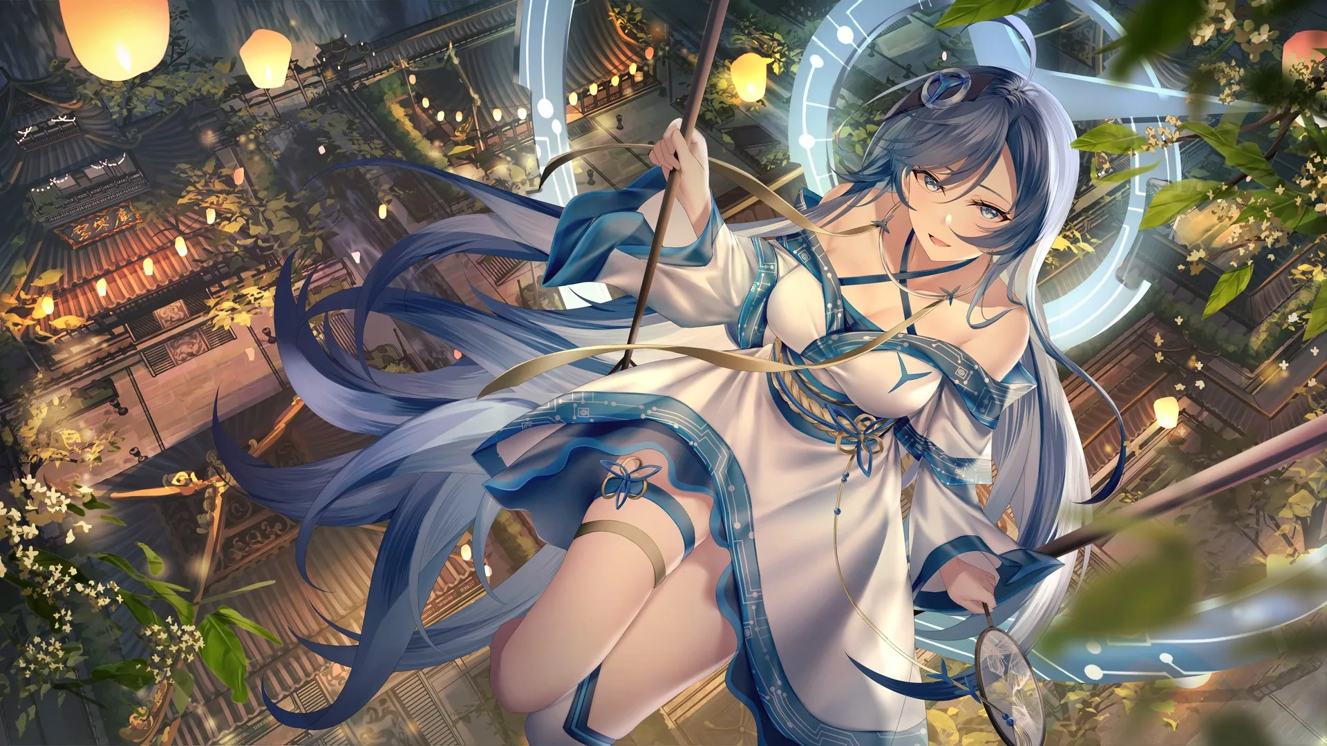 Blue hair, long hair, legion, animation, anime girl, Chinese clothing