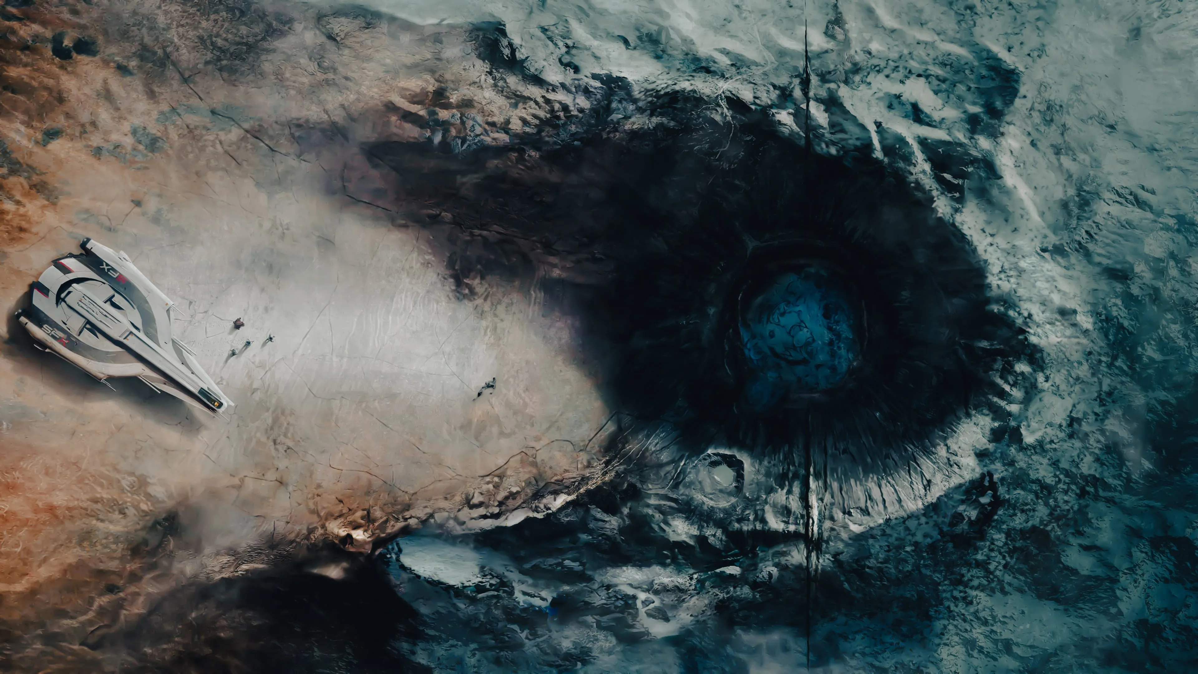 Adventurer CGI Electronic Game Futuristic Sci-Fi Novel Universe Spaceship Planet Crater Space Prosperity Landscape Artwork 4K Wallpaper