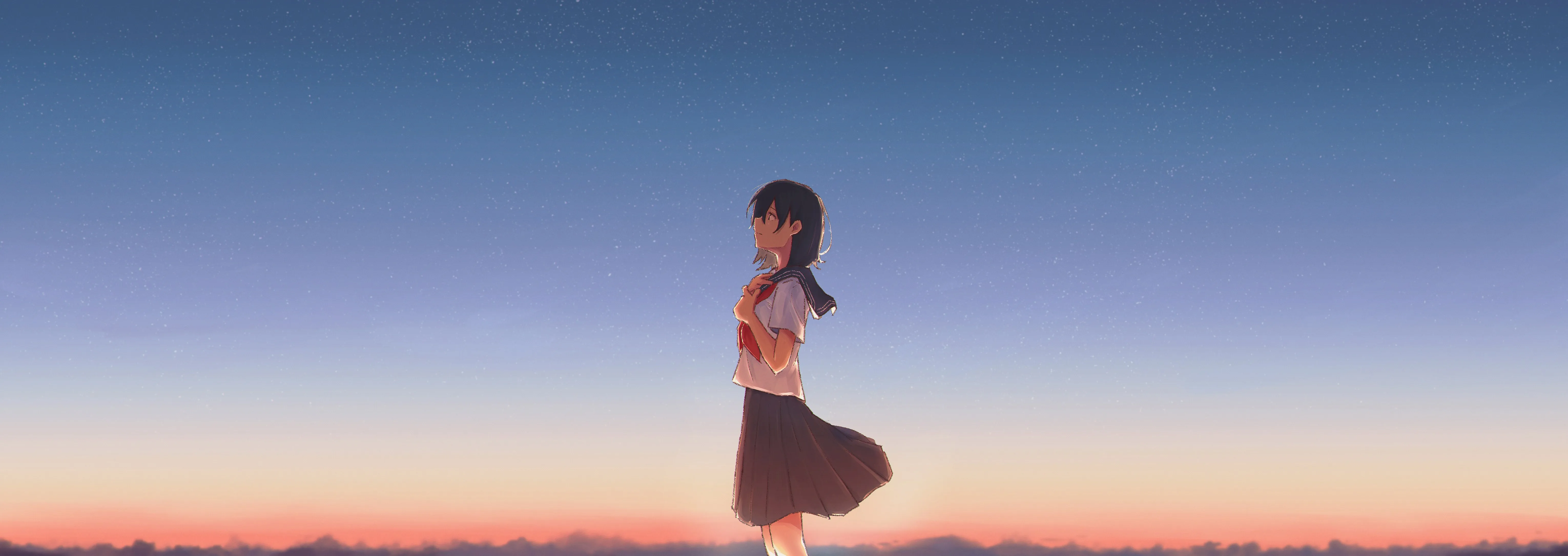 Girls, School Uniform, Sky, Outdoor, Anime, Girl, 4K Wallpaper