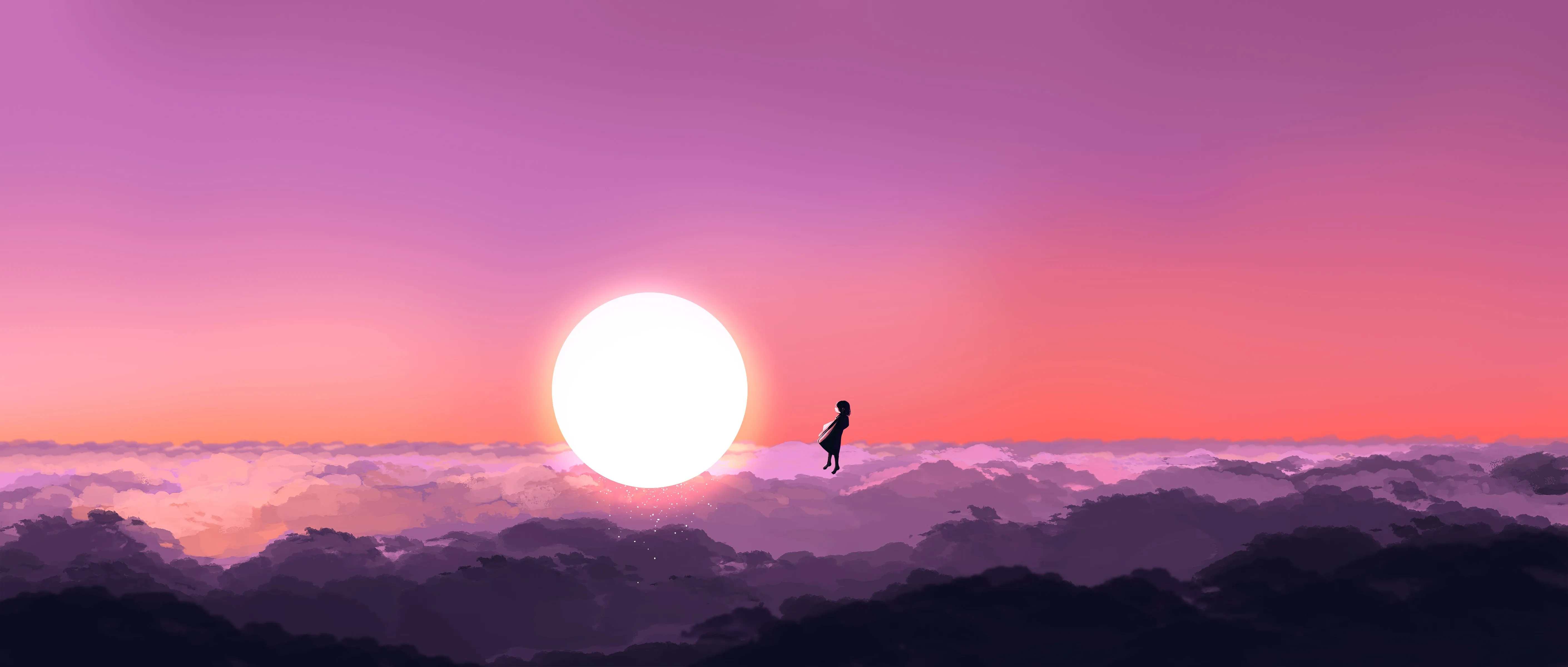 Elegant AI Art, Digital Painting, Sun, Clouds, Sky, Purple, Healing, Computer Wallpaper, 4K Wallpaper