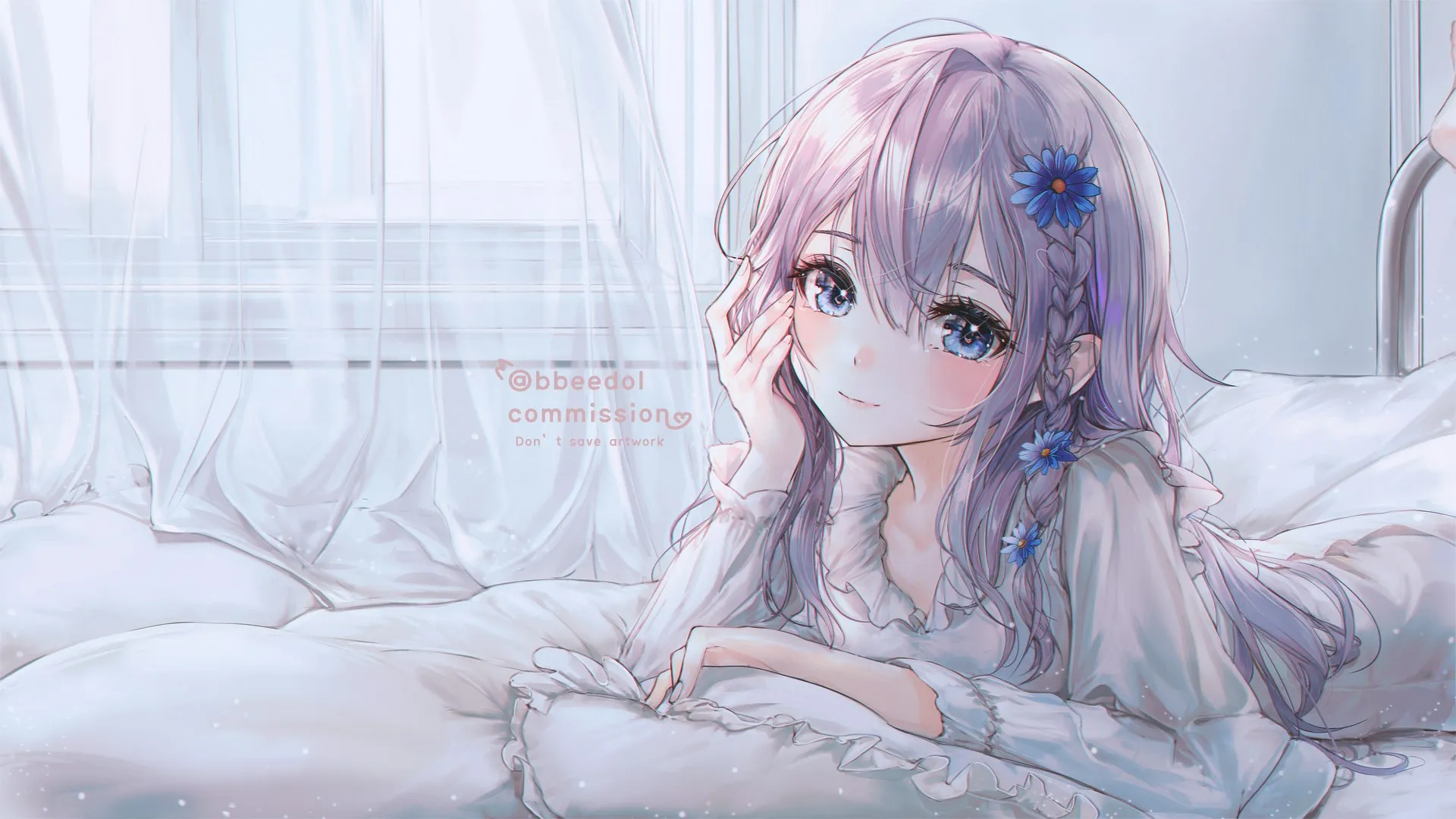 Blue Eyes, Anime, Anime Girl, Silver Hair, Girl with Chin in Hand
