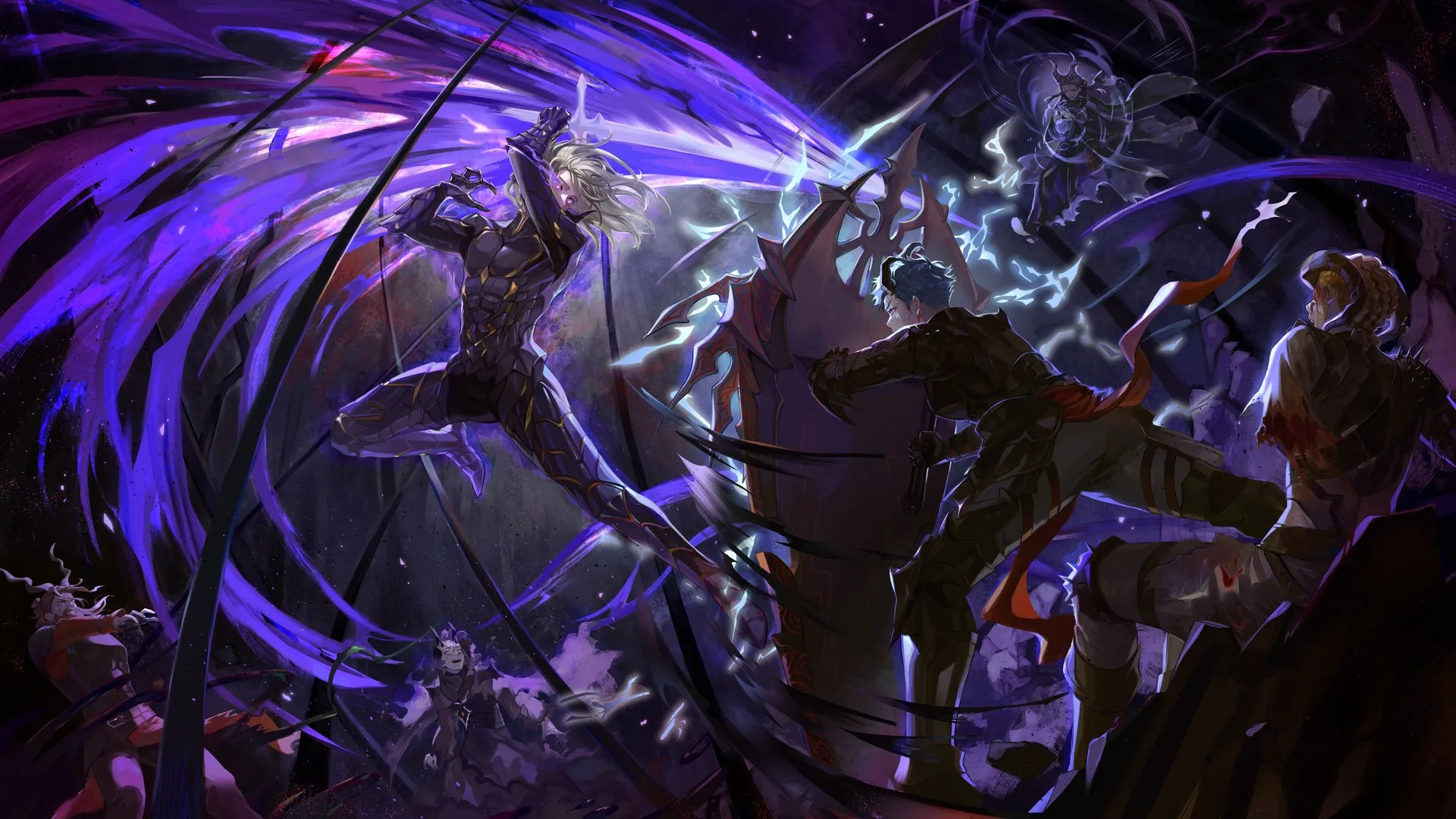 Arthur Levin, battle, purple flame, swordsman, shield, computer wallpaper, 4K wallpaper