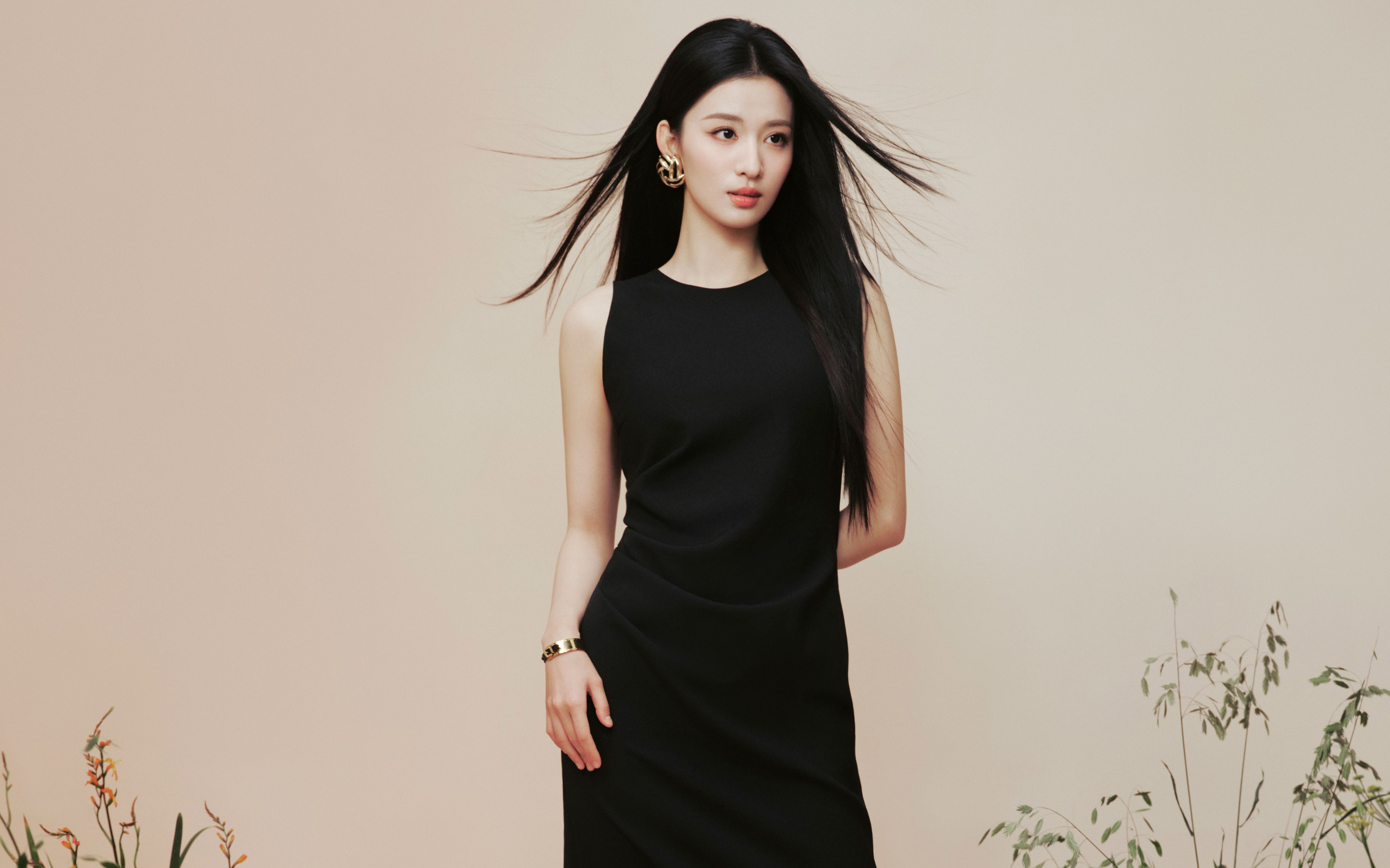 Wang Churuan, black, long dress, 4K beauty wallpaper 4K wallpaper