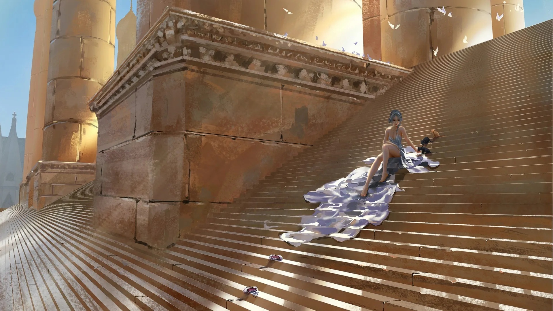 Fantasy Girl, Legs, Barefoot, Stairs, Computer Wallpaper 4K Wallpaper