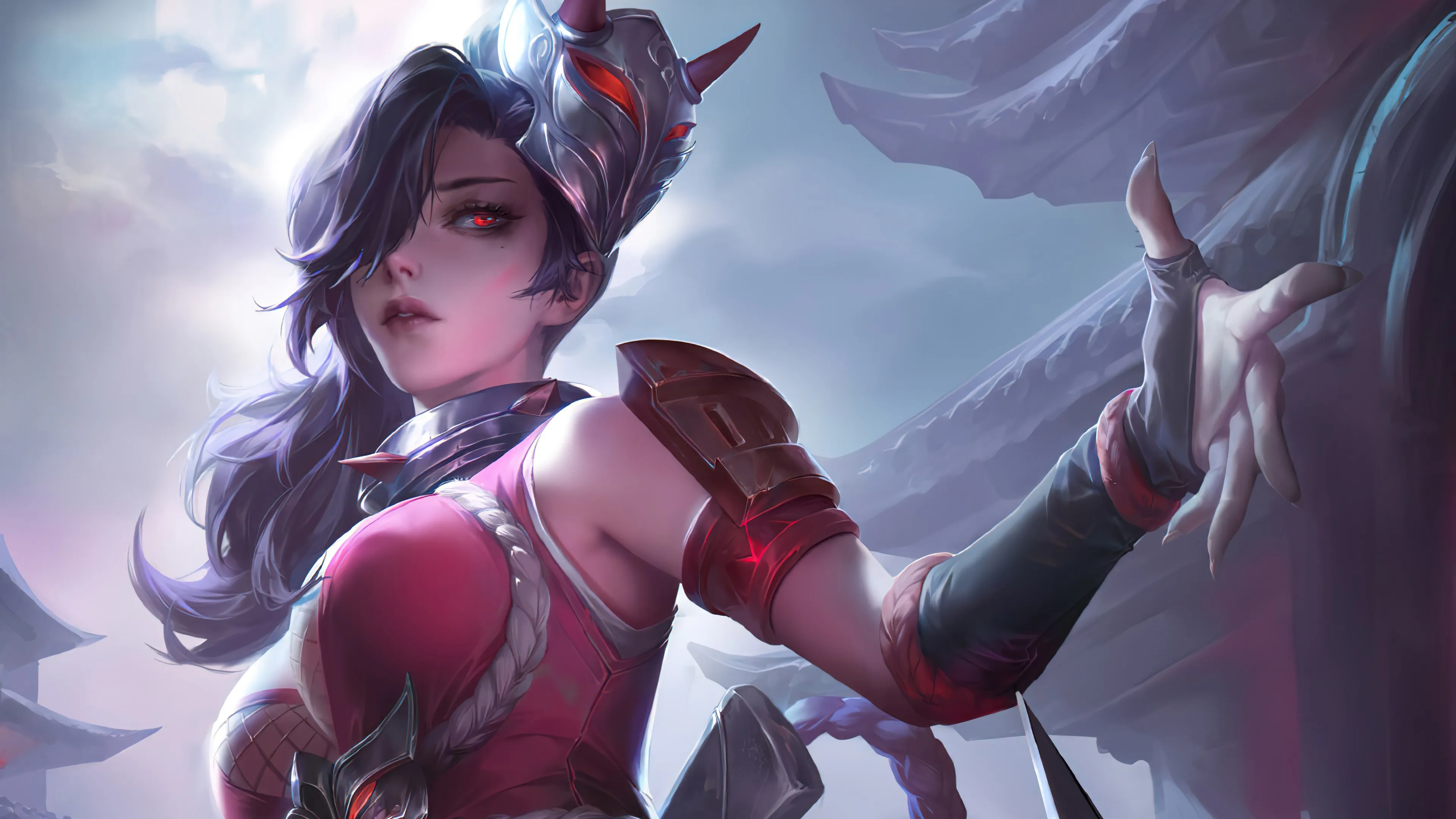 Warrior, Red Eyes, Fantasy Girl, Fantasy Art, Mask, 4K Wallpaper