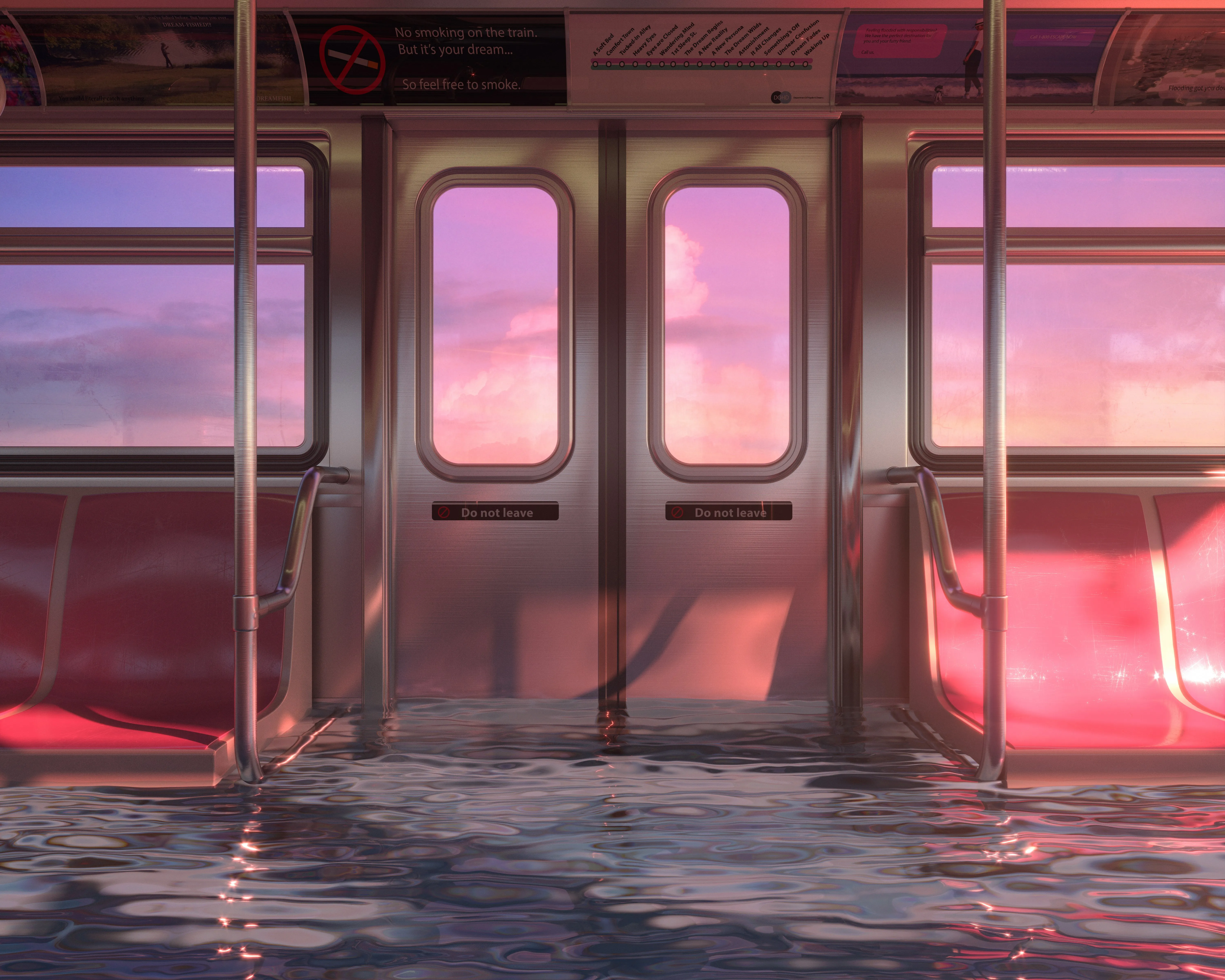 AI Art Illustration Abstract Water Cloud Subway Train Art Sky Computer Wallpaper 4K Wallpaper