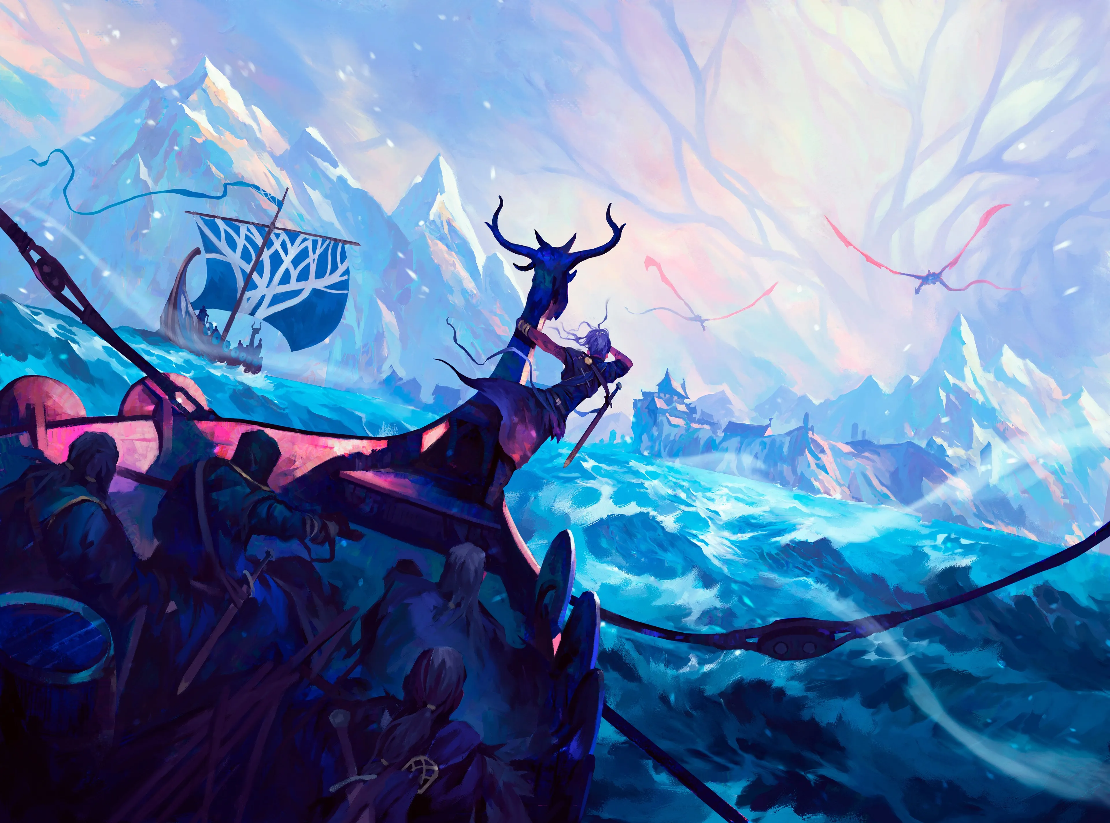 Art, Ocean, Ships, AI Art, Digital Painting, Computer Wallpaper, 4K Wallpaper