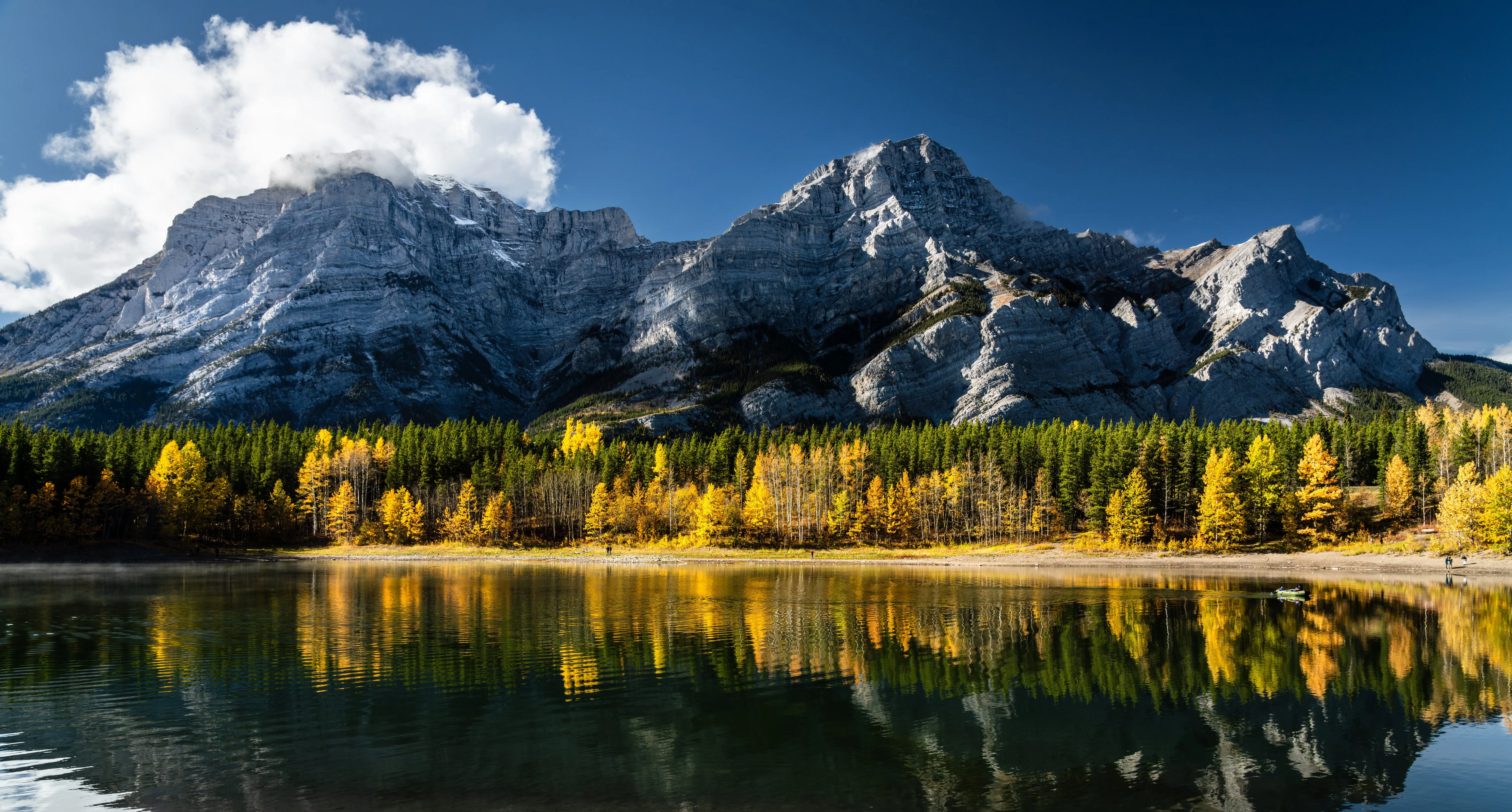 Nature, Scenery, Trees, Water, Clouds, Mountains, Boats, Lakes, Autumn, Sky, Reflection, 4K Wallpaper