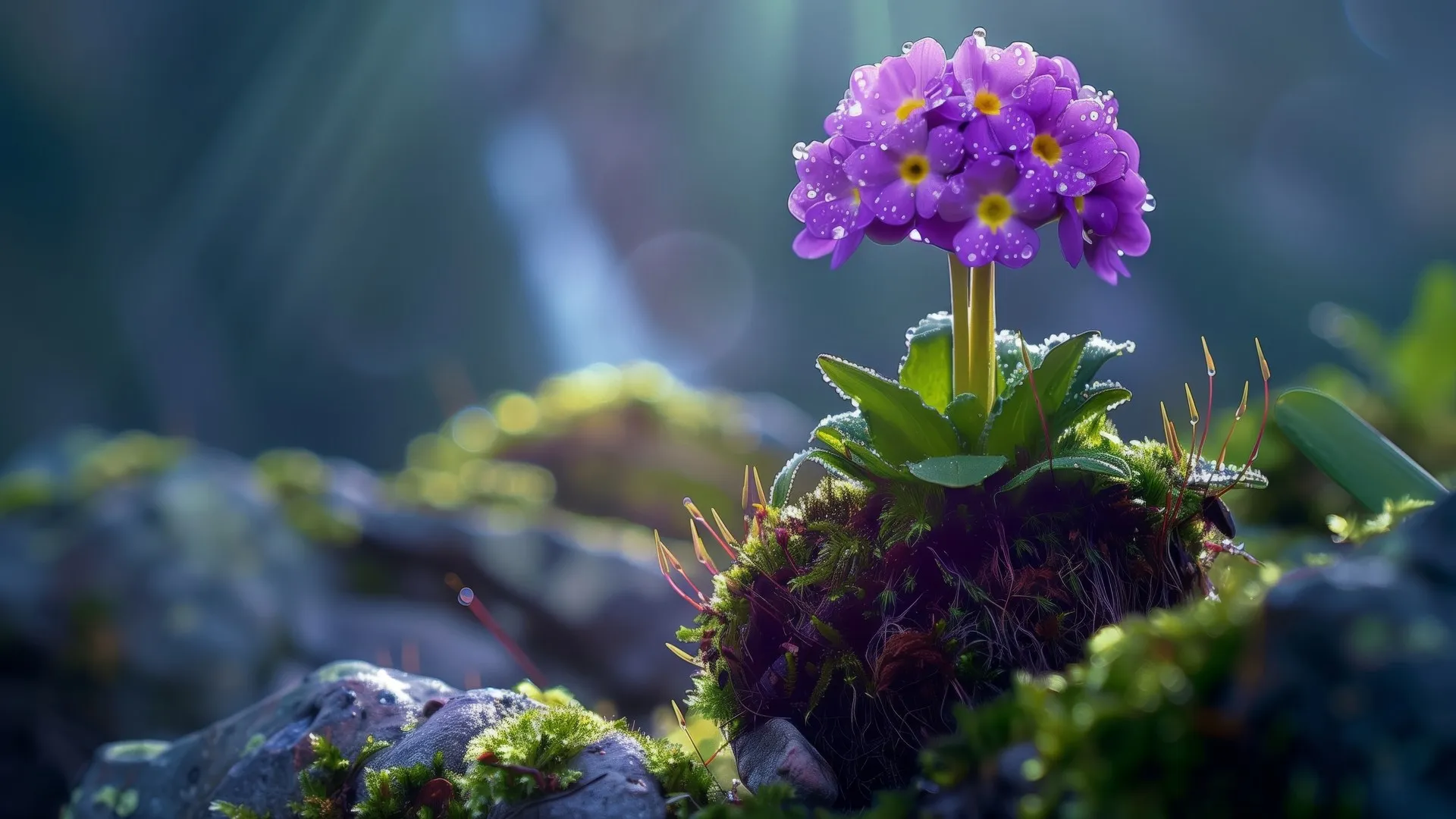 Flowers, Moss, Rocks, Depth of Field, Computer Wallpaper, 4K Wallpaper