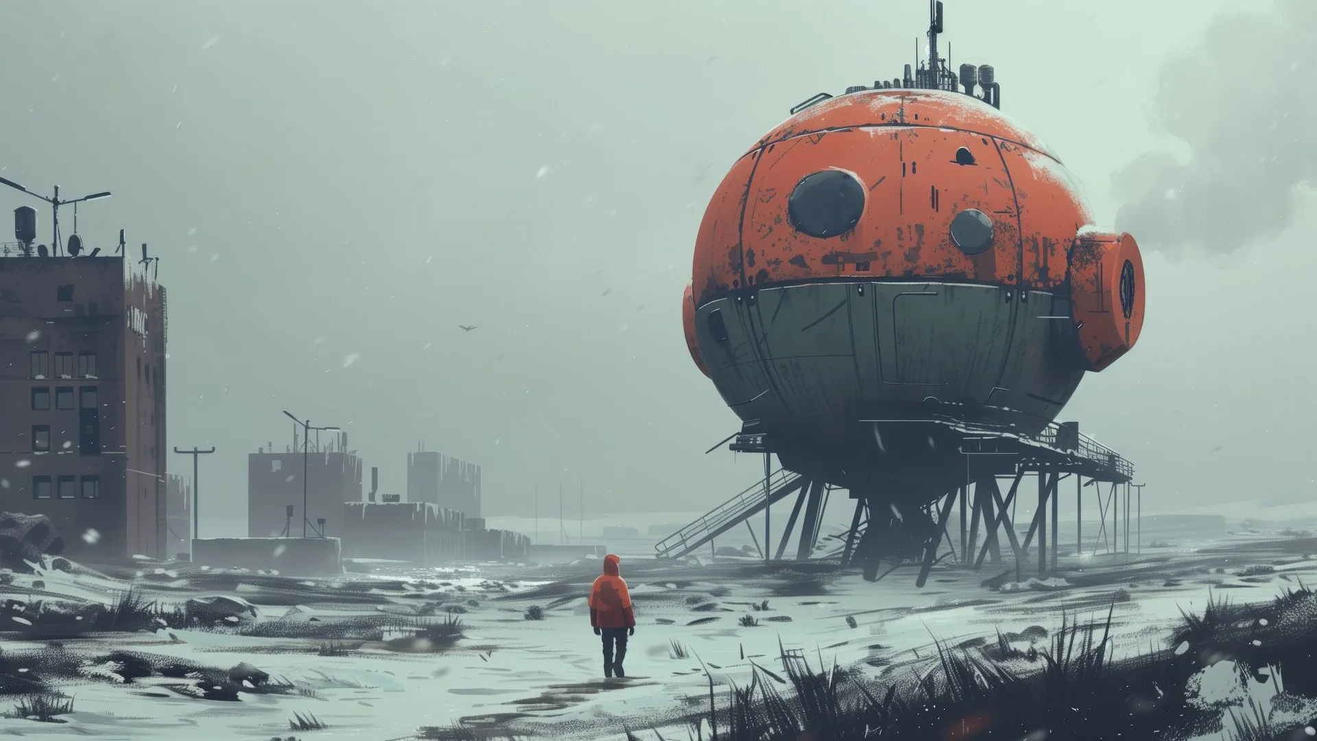 AI Art Illustration Tower Snow Winter Orange Fog Computer Wallpaper 4K Wallpaper