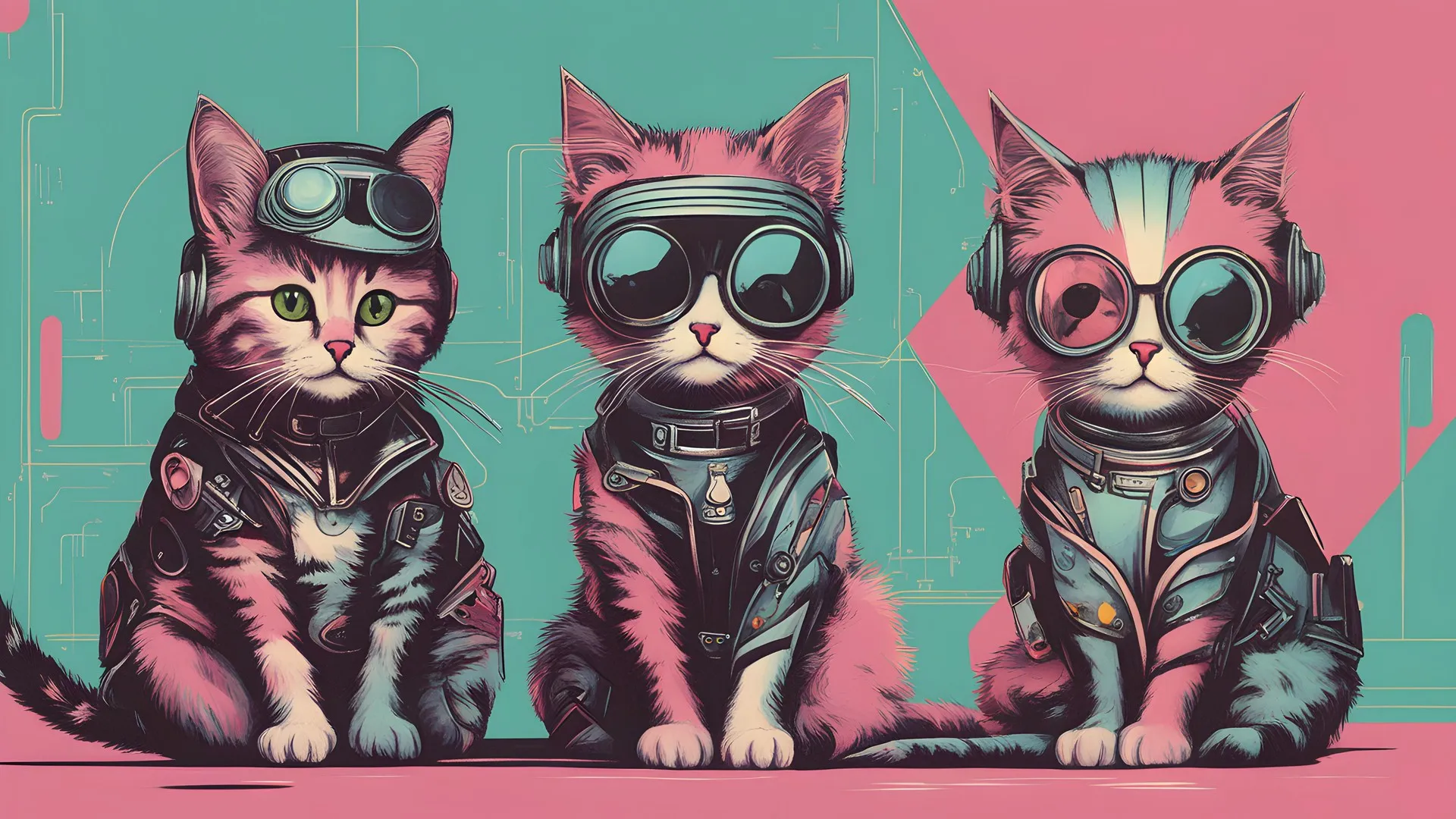Artificial Intelligence Art, Retro Style, Futurism, Cat, Goggles, Pink, Blue, Punk, Animal, Computer Wallpaper, 4K Wallpaper