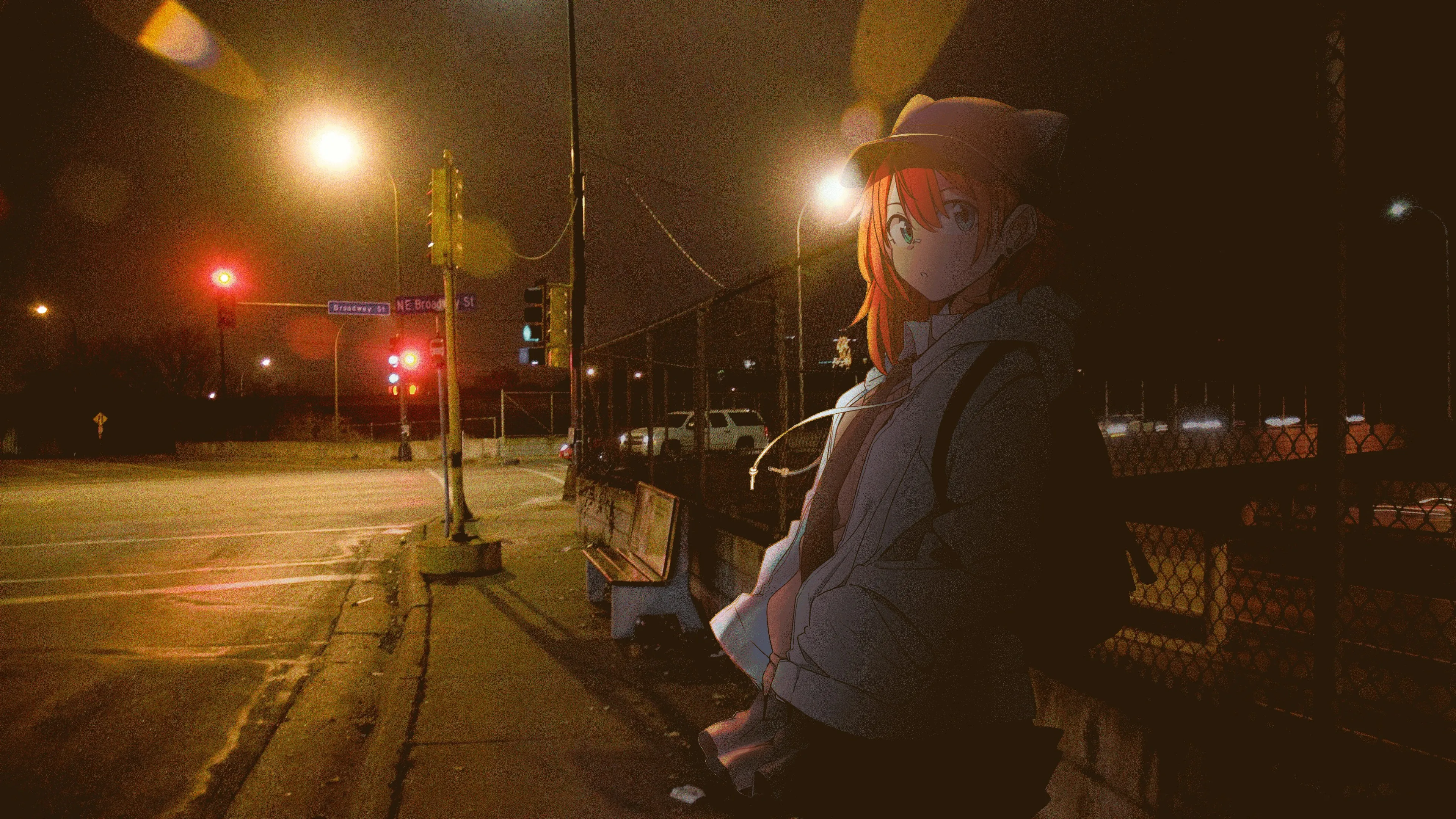 Game, Anime, Anime Girl, Hat, Cat Ears, Night, Road, Street Lamp, 4K Wallpaper