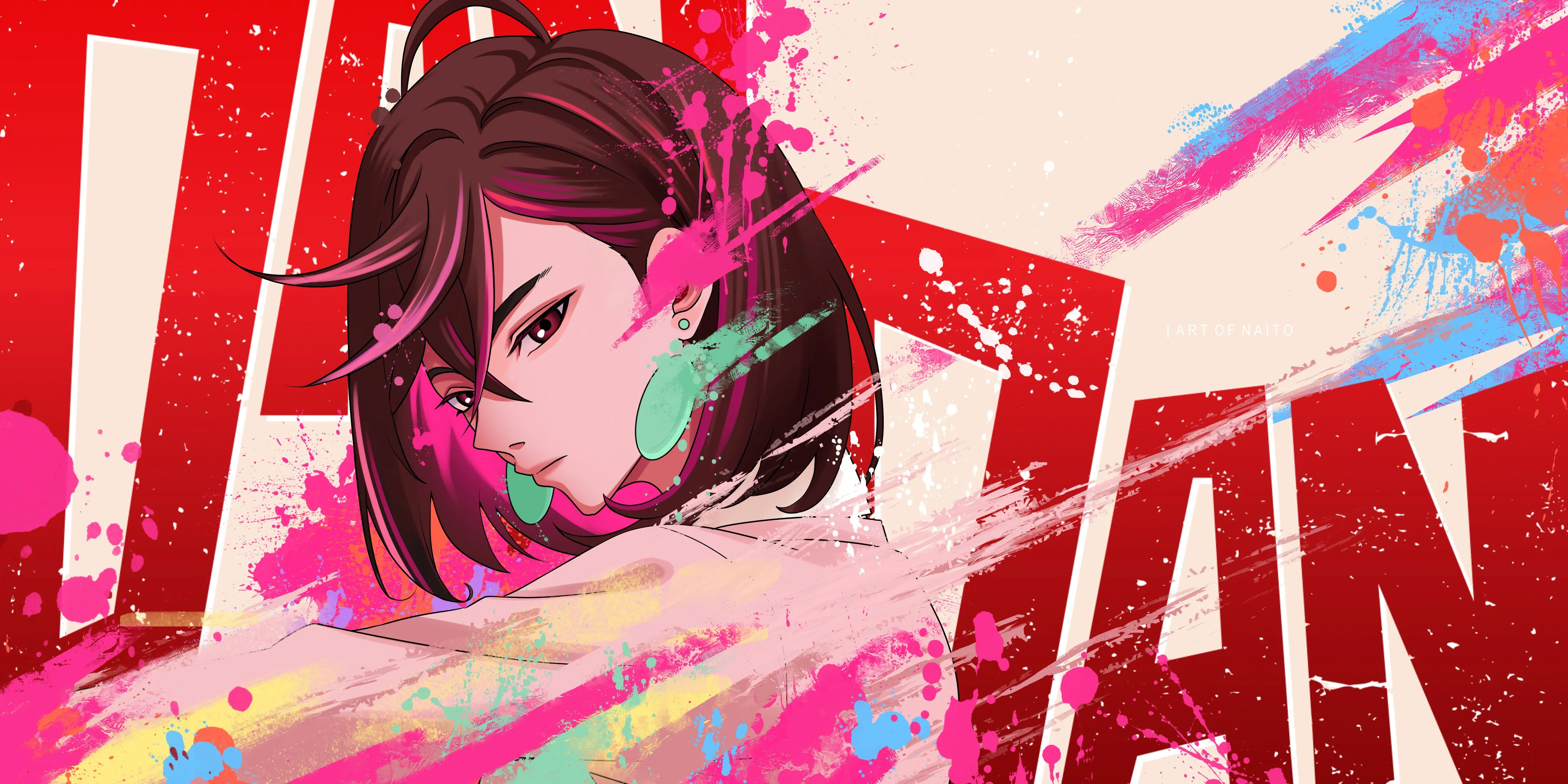Short hair, black hair, anime, girl, Dan Dan, earrings, color, colorful, school uniform, 4K wallpaper