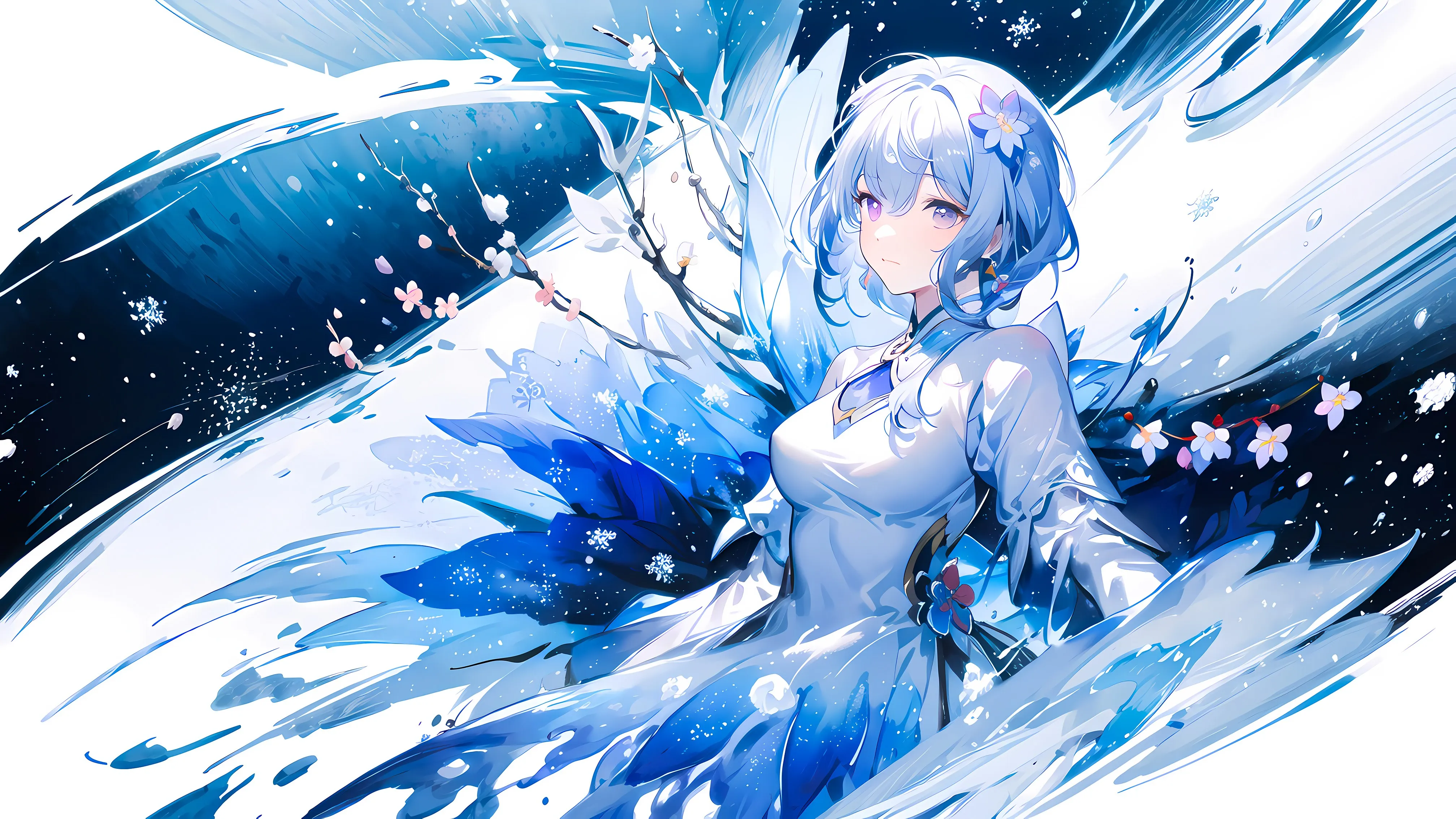 Ice, Artist, Blonde Hair, Anime, Girl, Artificial Intelligence, Flower, Albinism, Dress, 4K Wallpaper