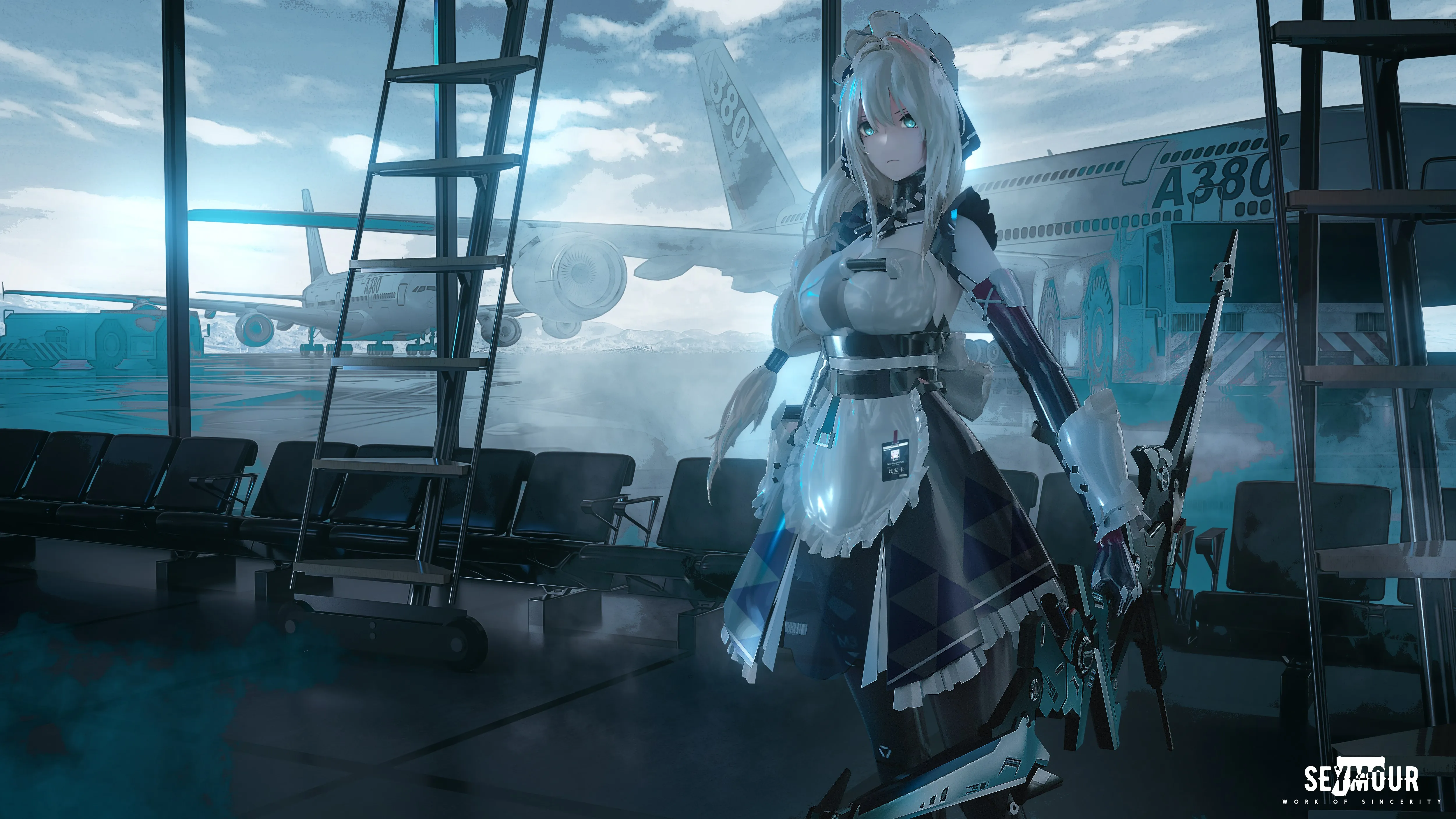 Anime, Anime Girl, Grey Crow, Maid, Clothing, Plane, Airport, 4K Wallpaper