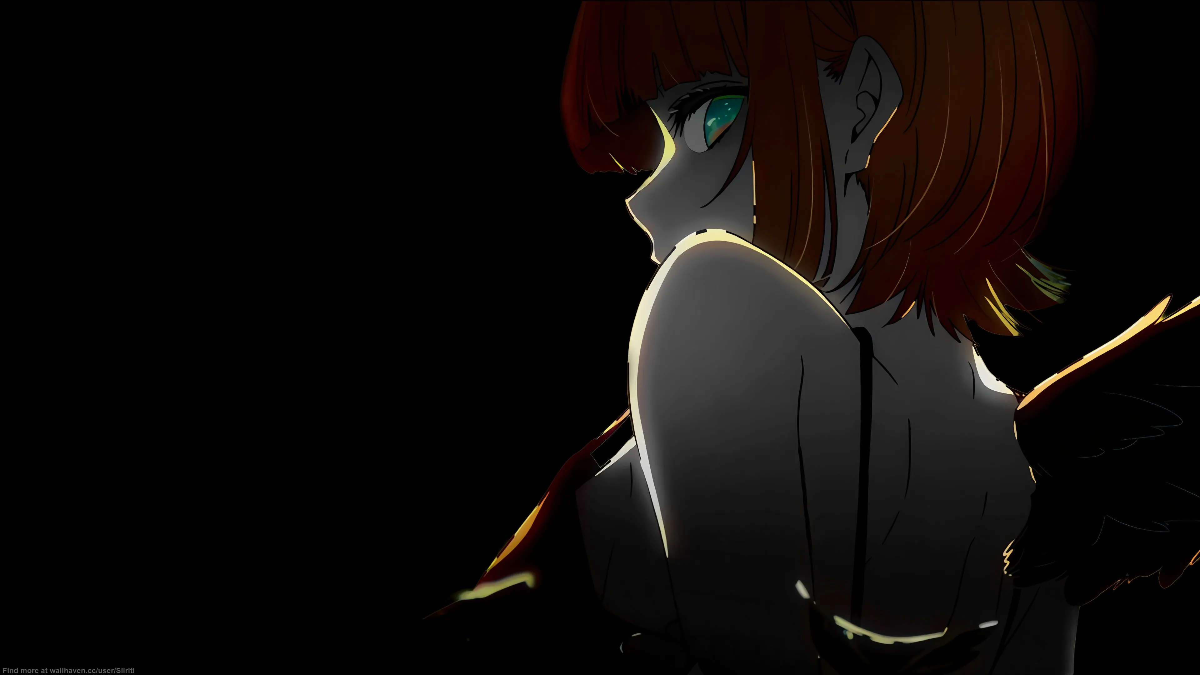 Black background, monochrome, anime girl, simple background, minimalist, turn back, look back, 4K wallpaper