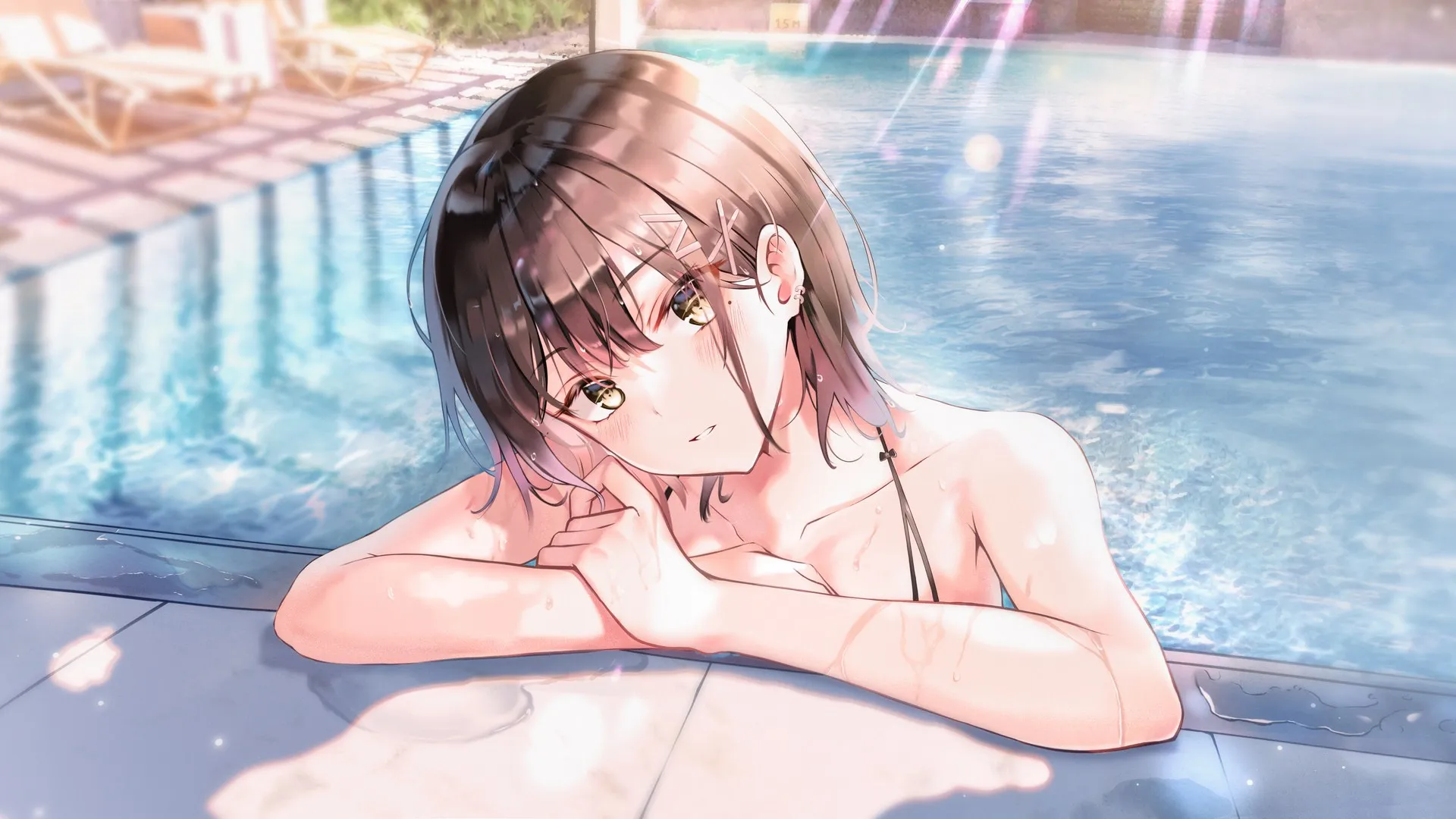 Anime, Anime Girl, Artwork, Brown Eyes, Swimming Pool, Computer Wallpaper, 4K Wallpaper