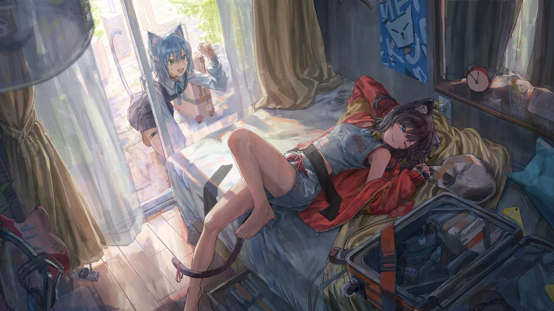Lying Down Cat Girl Animal Ears Anime Girl Cat Ears Cat Tail Computer Wallpaper 4K Wallpaper
