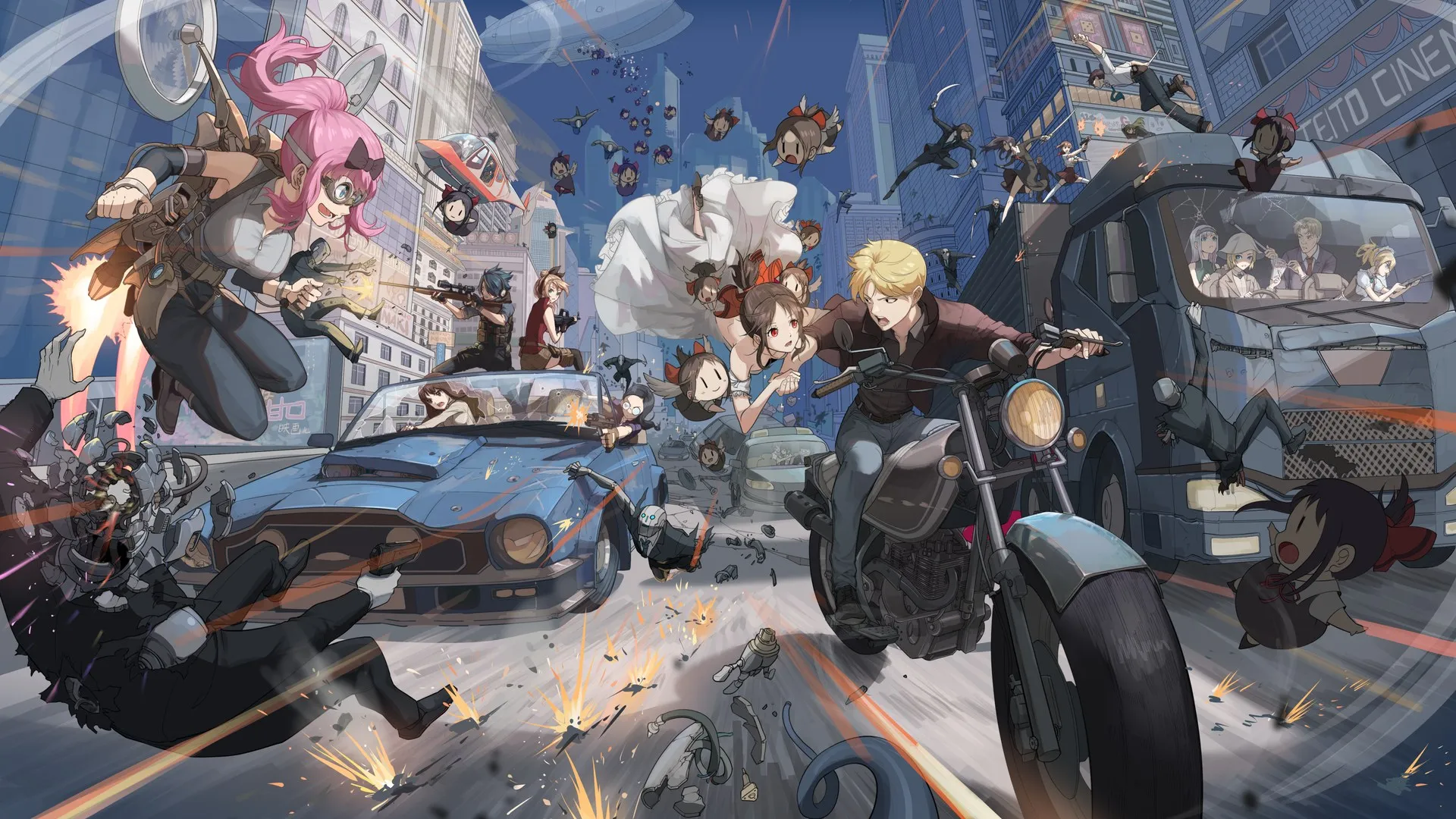 Anime Boy, Anime Girl, Anime, Car, Jet Pack, Motorcycle, Truck, Pie澶? Computer Wallpaper, 4K Wallpaper