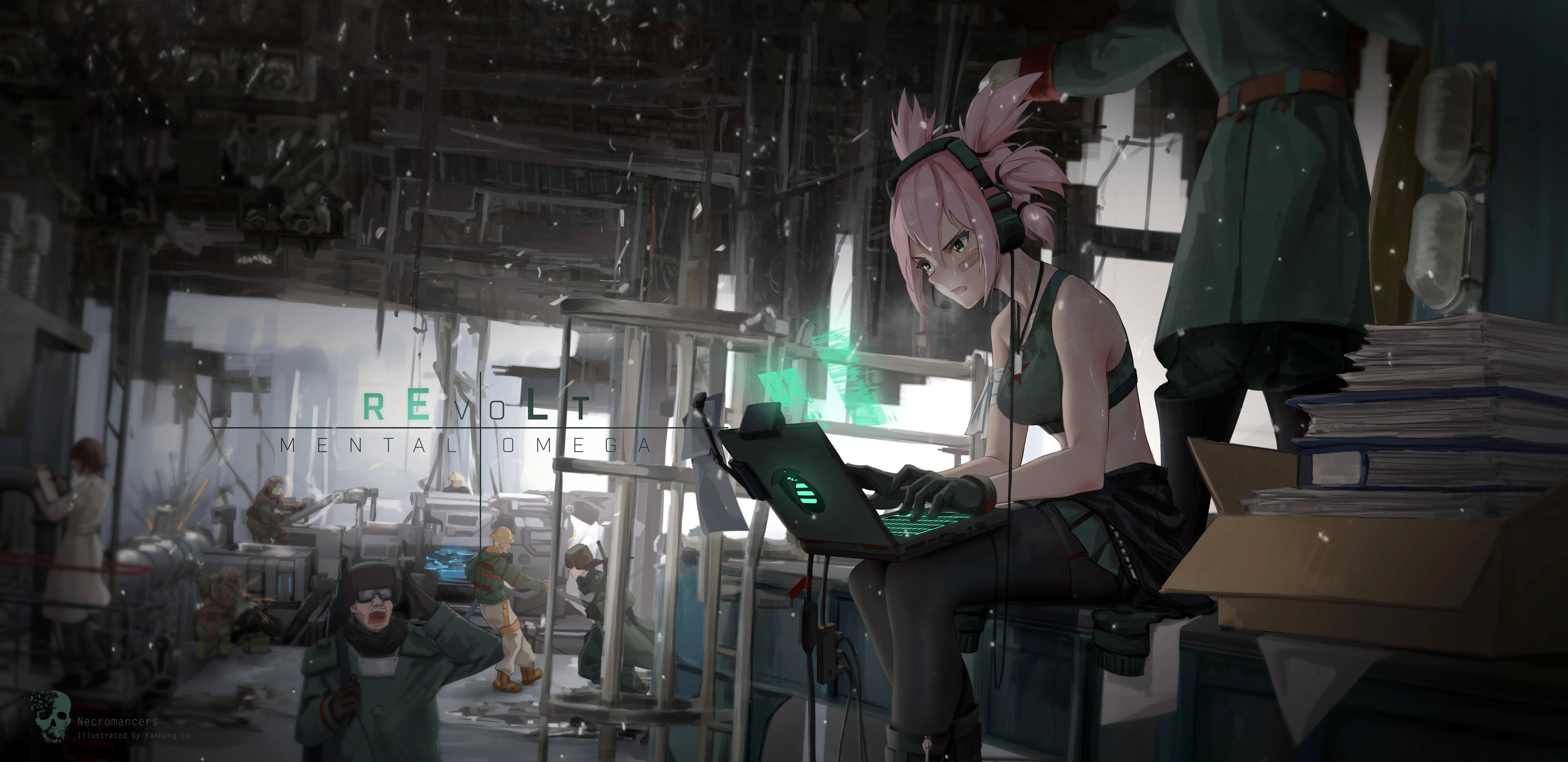 Pink Hair, Short Hair, Anime, Omega, Red Alert, Anime Girl, 4K Wallpaper