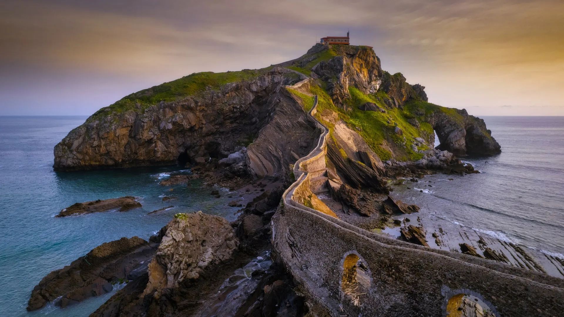Nature, landscape, water, clouds, sky, coast, rocks, islands, grass, 4K wallpaper