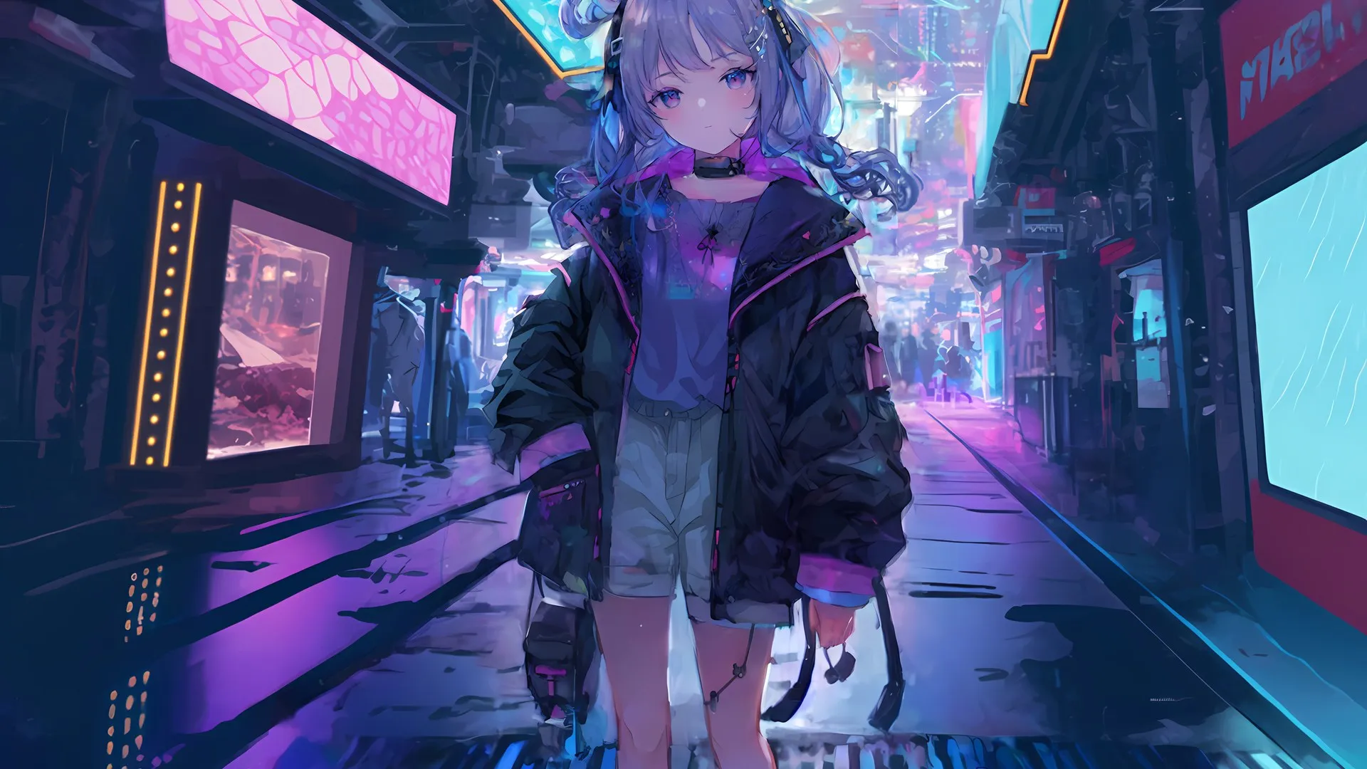 Exquisite 4K Wallpaper – Anime Girl Neon Light Computer Wallpaper, High-Definition Wallpaper Download