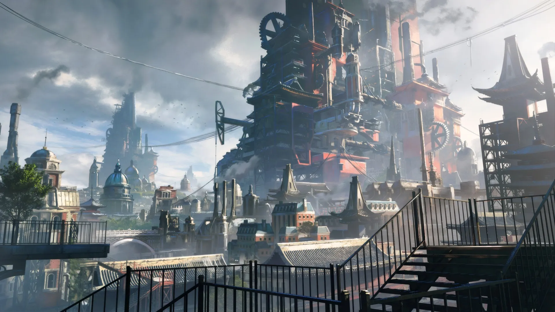 Beautiful and fresh poetry landscape environment, town, animation, computer and mobile phone wallpaper
