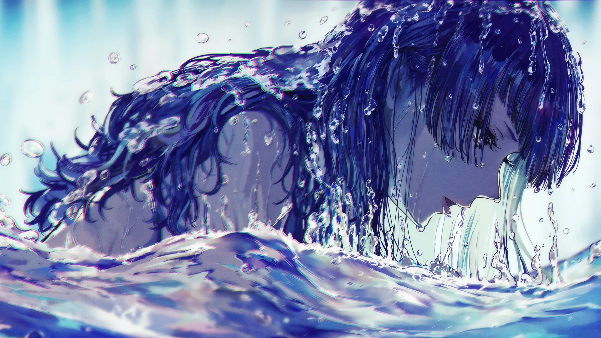 Long hair, anime, anime girl, water, Tanaka Mami