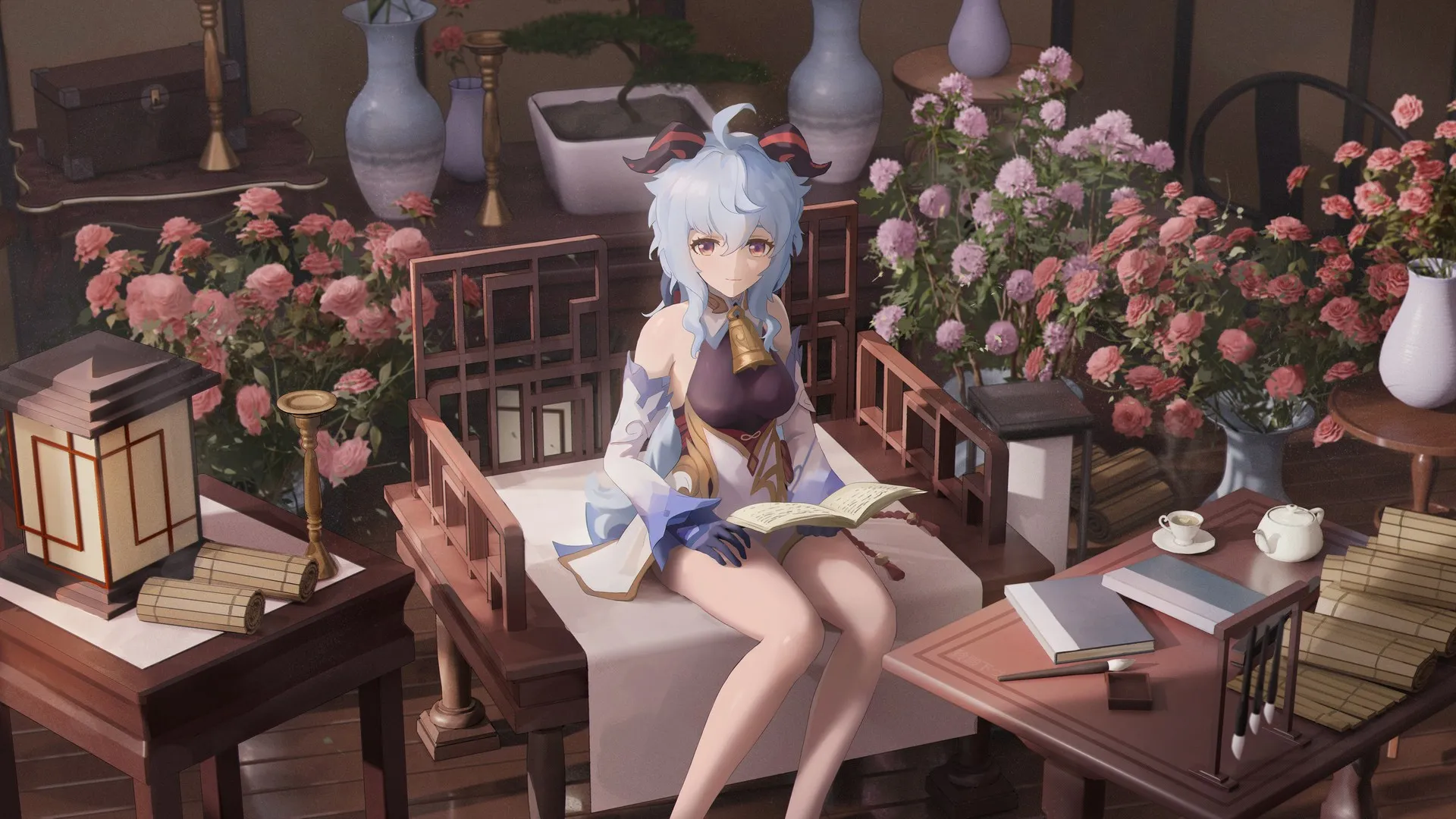 Ultra HD 8K Wallpaper – Anime Girl Monochrome Hair Computer Wallpaper – High-Resolution Wallpaper Download