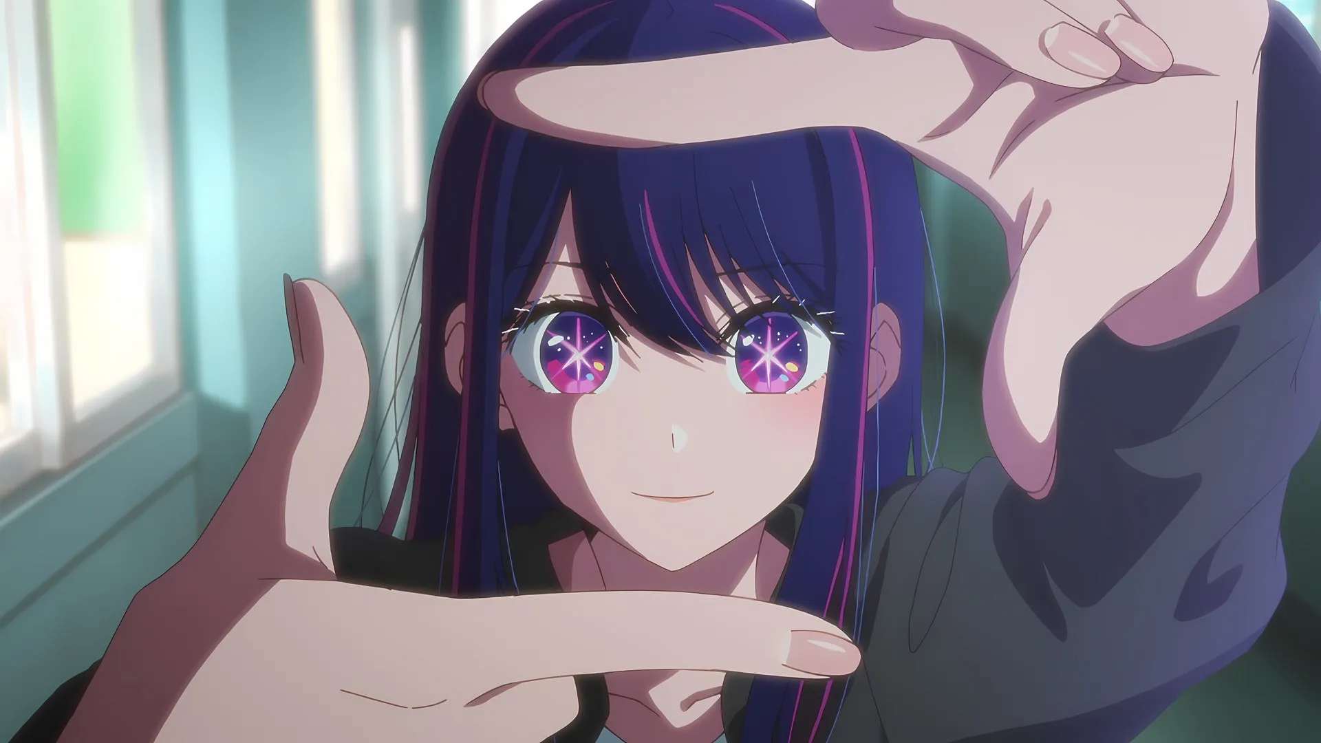 Finger Frame, Celebrity Eyes, Two-tone Hair, Anime Girl, Computer Wallpaper, 4K Wallpaper