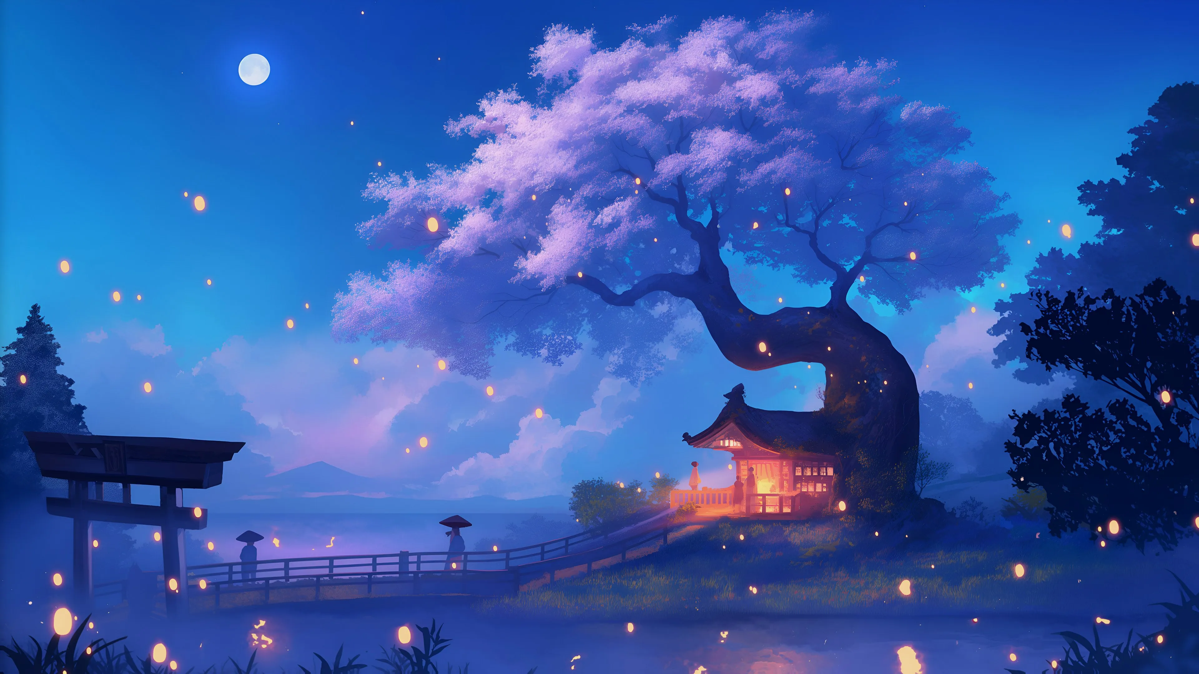Cottage, beautiful, moonlight, scenery, 4K wallpaper