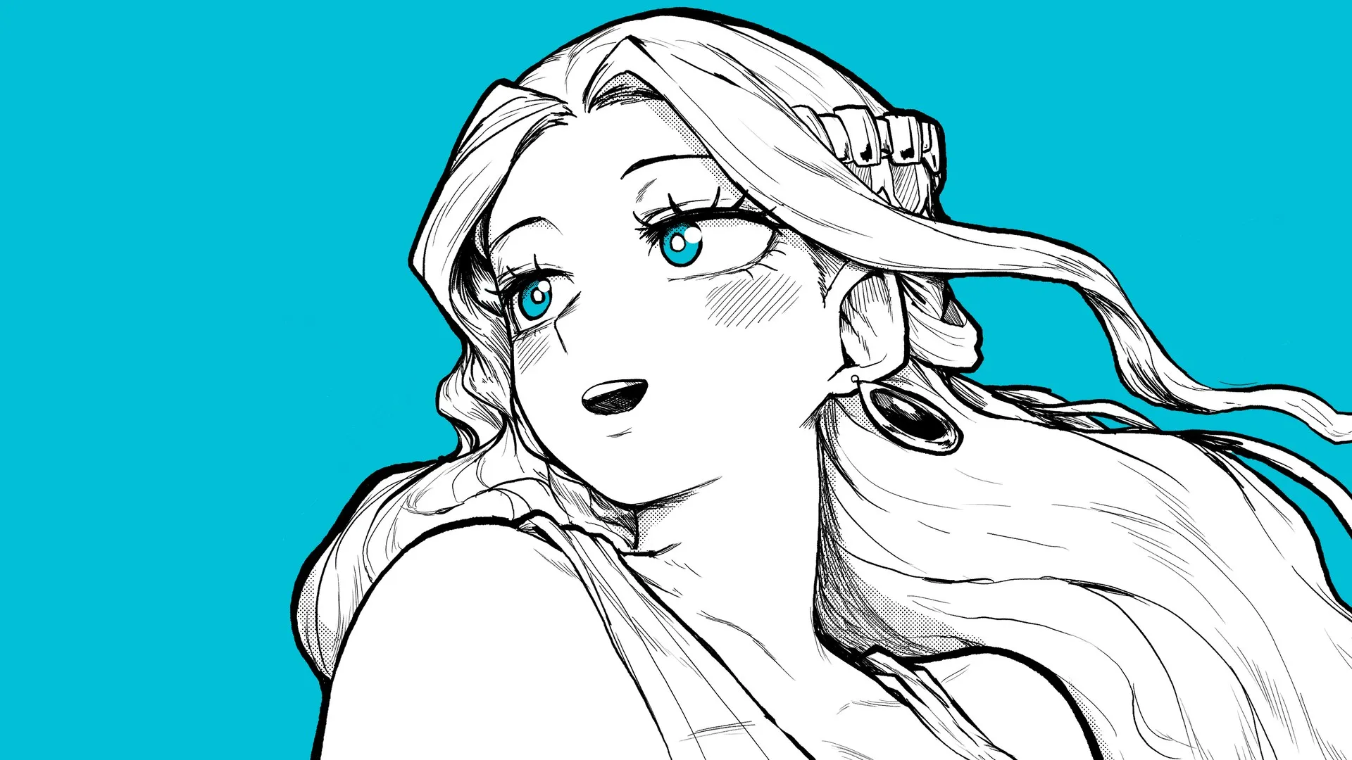 An anime girl illustration with selective coloring