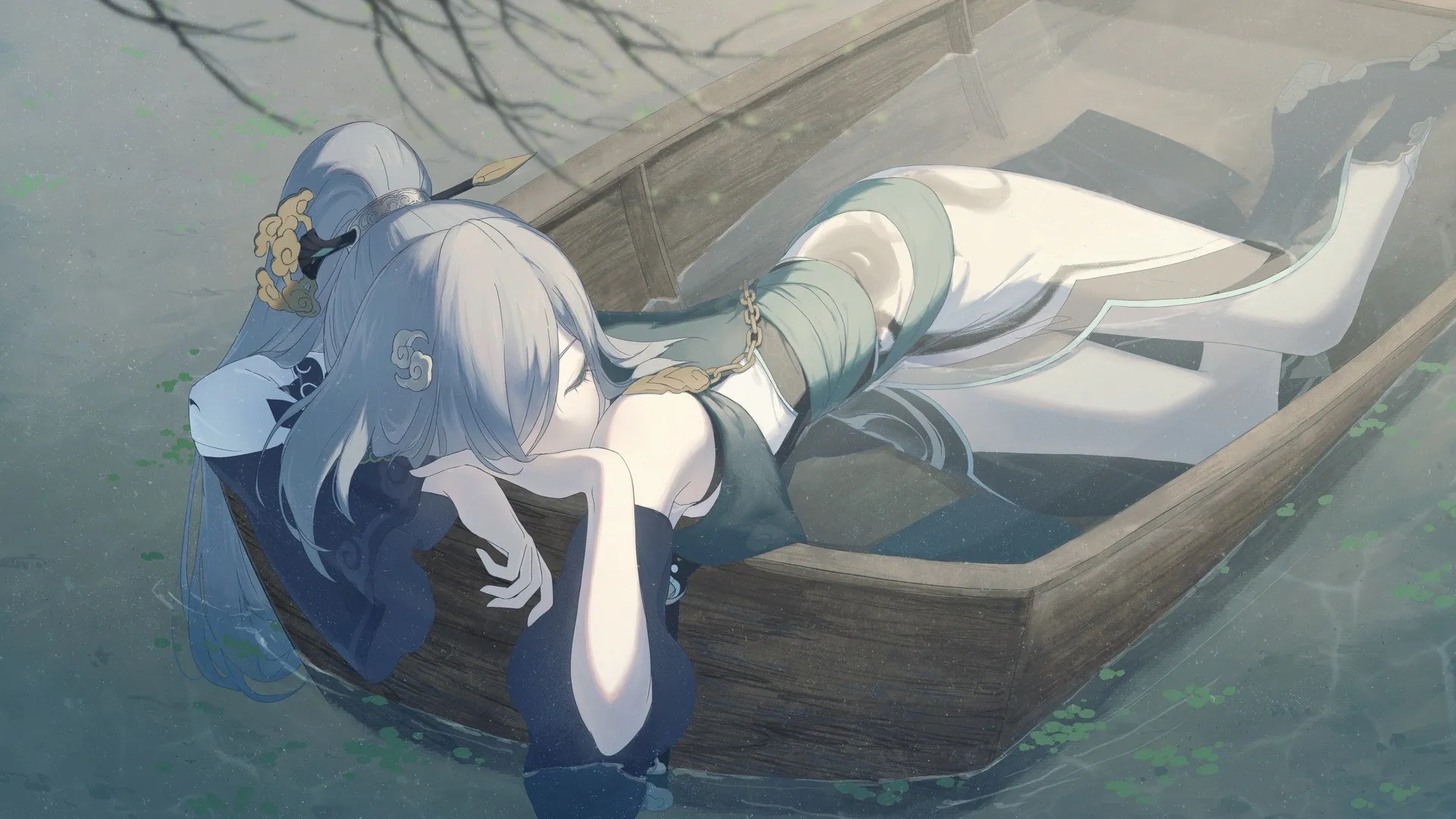 Ponytail, Anime Girl, Chinese Dress, Boat