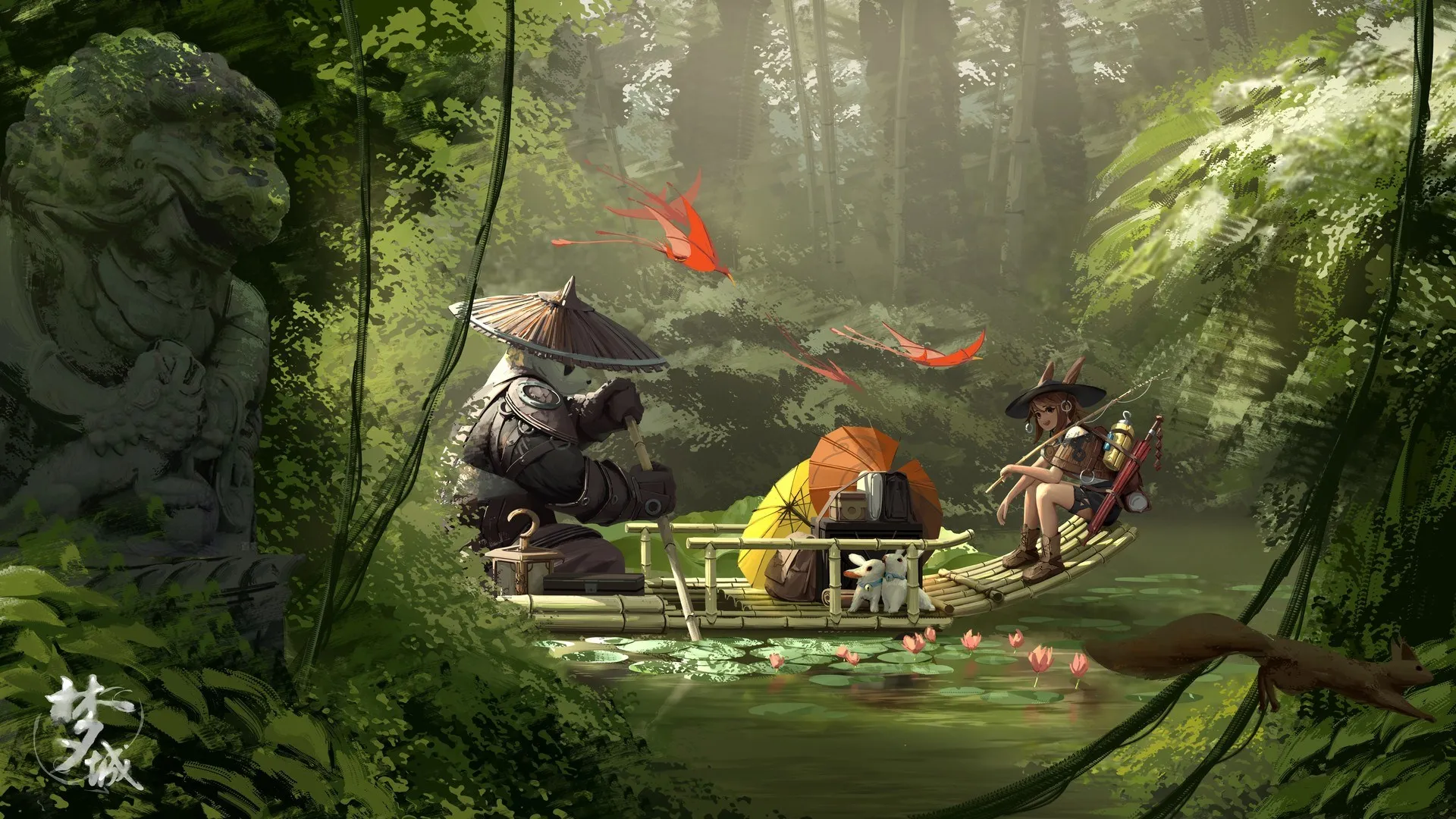 Picture, Panda, Rabbit, Anime Girl, Water, Computer Wallpaper, 8K Wallpaper