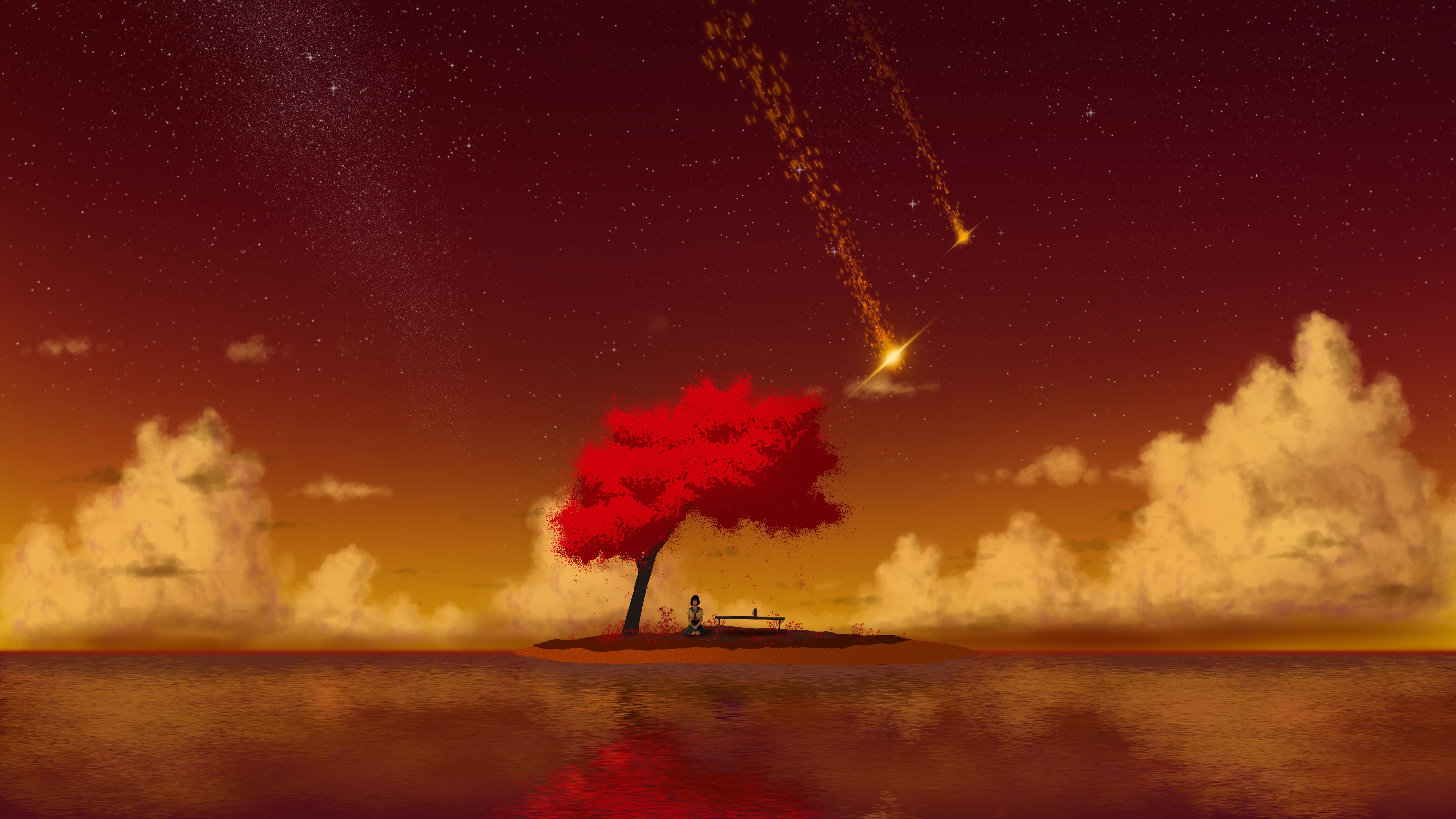 Akizaki Sakura Meteor Stars Reflection Girl Student Lake Chair 8K Wallpaper