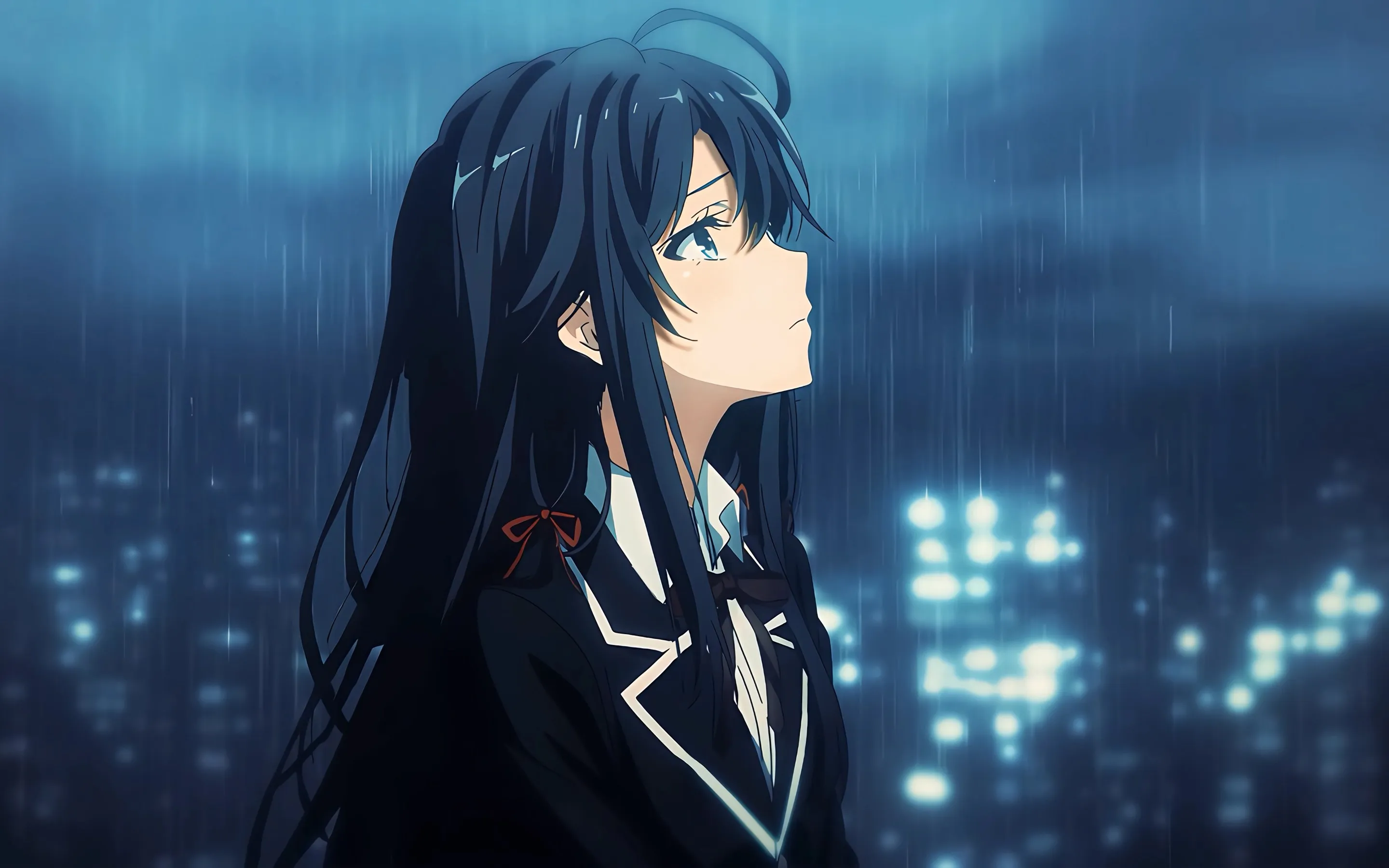 Shi no Shimo, Shino, in the Rain, Rain, Rainwater, Anime, Girl, 2K Wallpaper