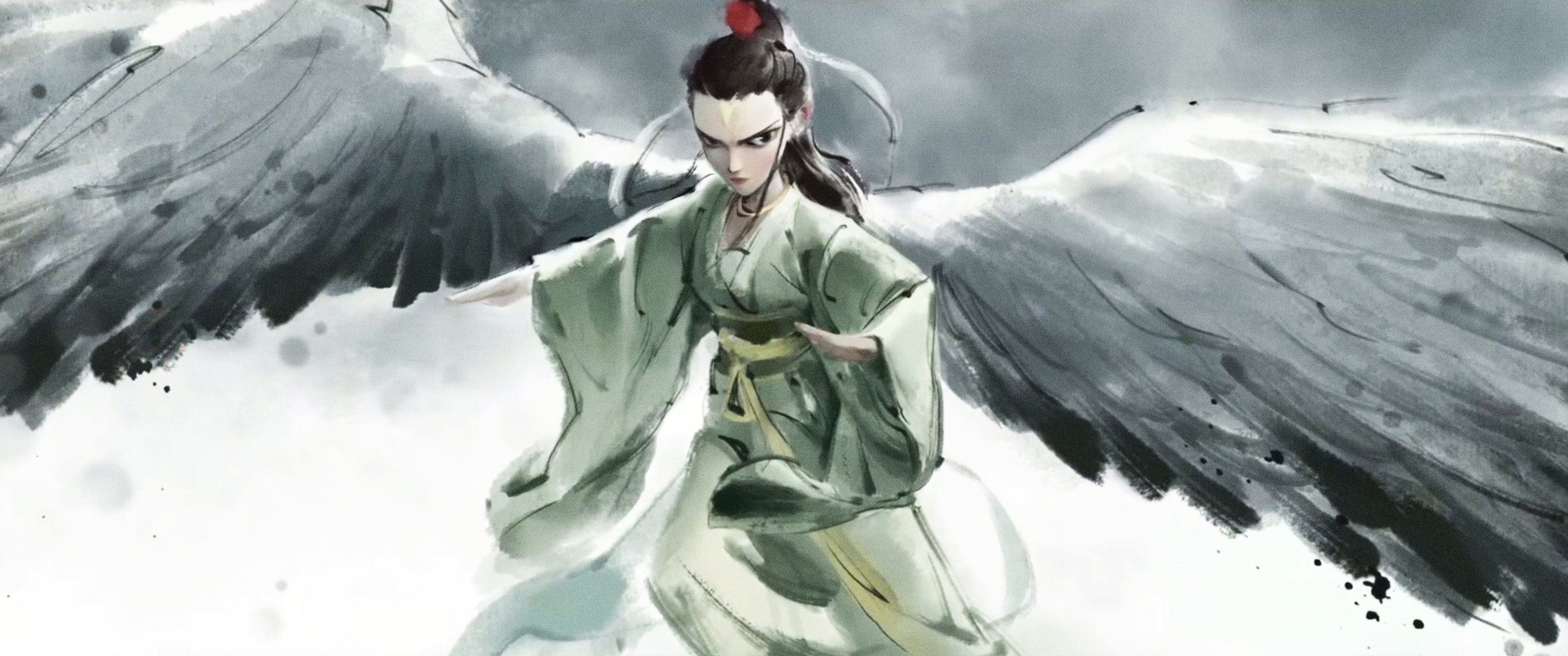 Nezha, The Demon Child Disturbing the Sea, He Tong, Ink Painting, Fish-Screen Wallpaper, 2K Wallpaper
