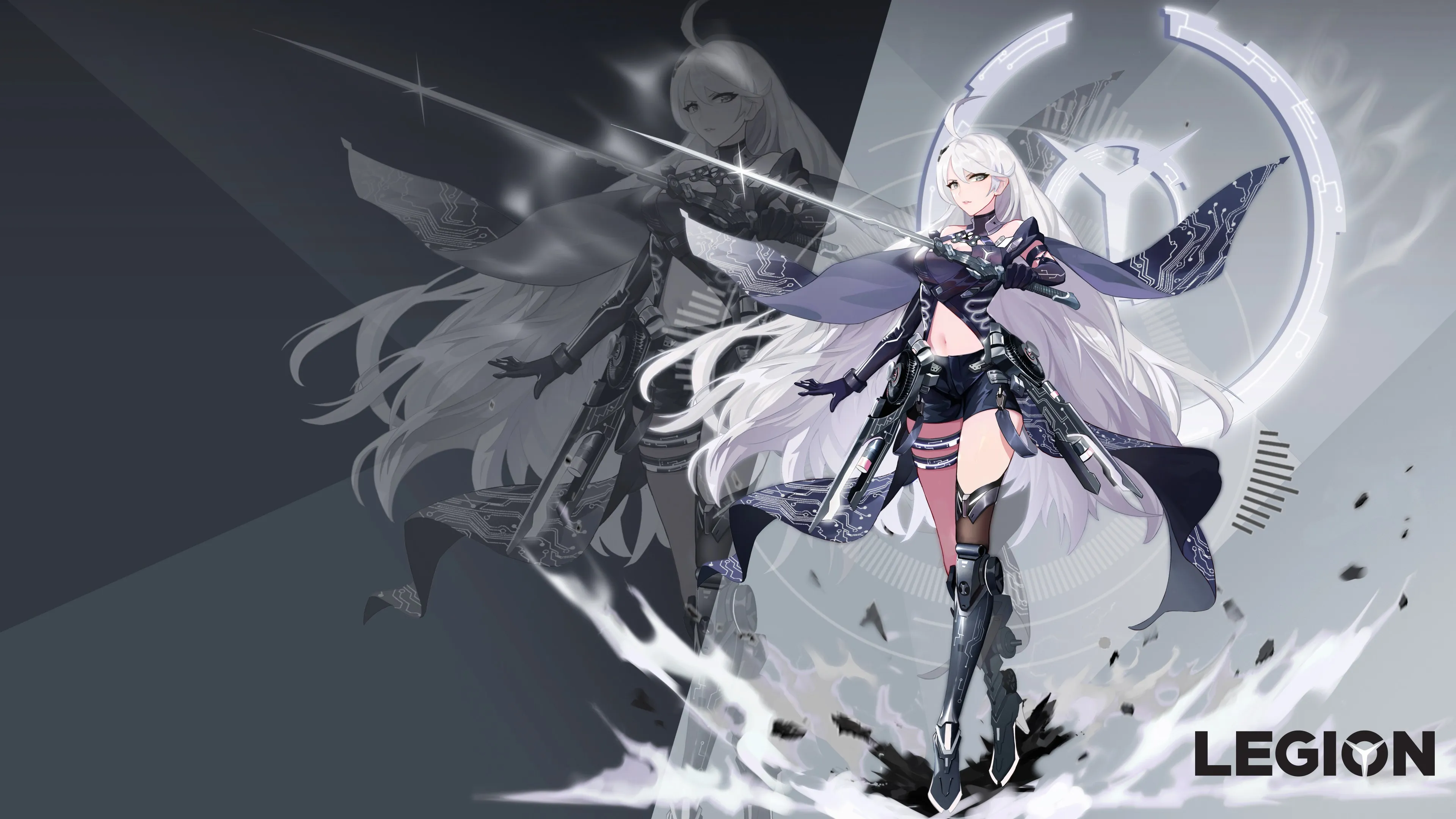 Legion, Women, White Hair, Long Hair,鑱旀兂, Animation, Girl, Pants, Sword, Computer Wallpaper, 4K Wallpaper