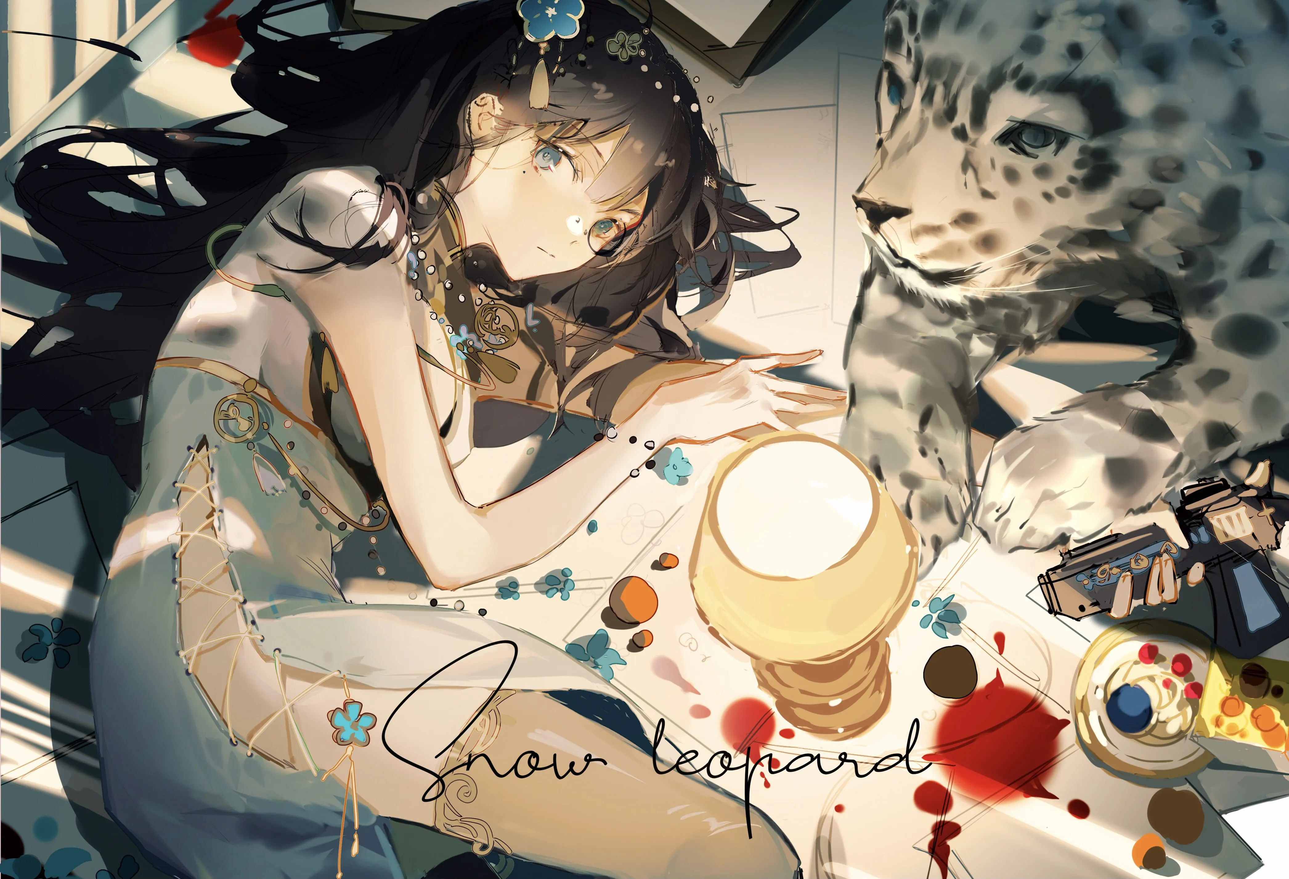 Look Up, Anime, Girl, Tiger, 4K Wallpaper