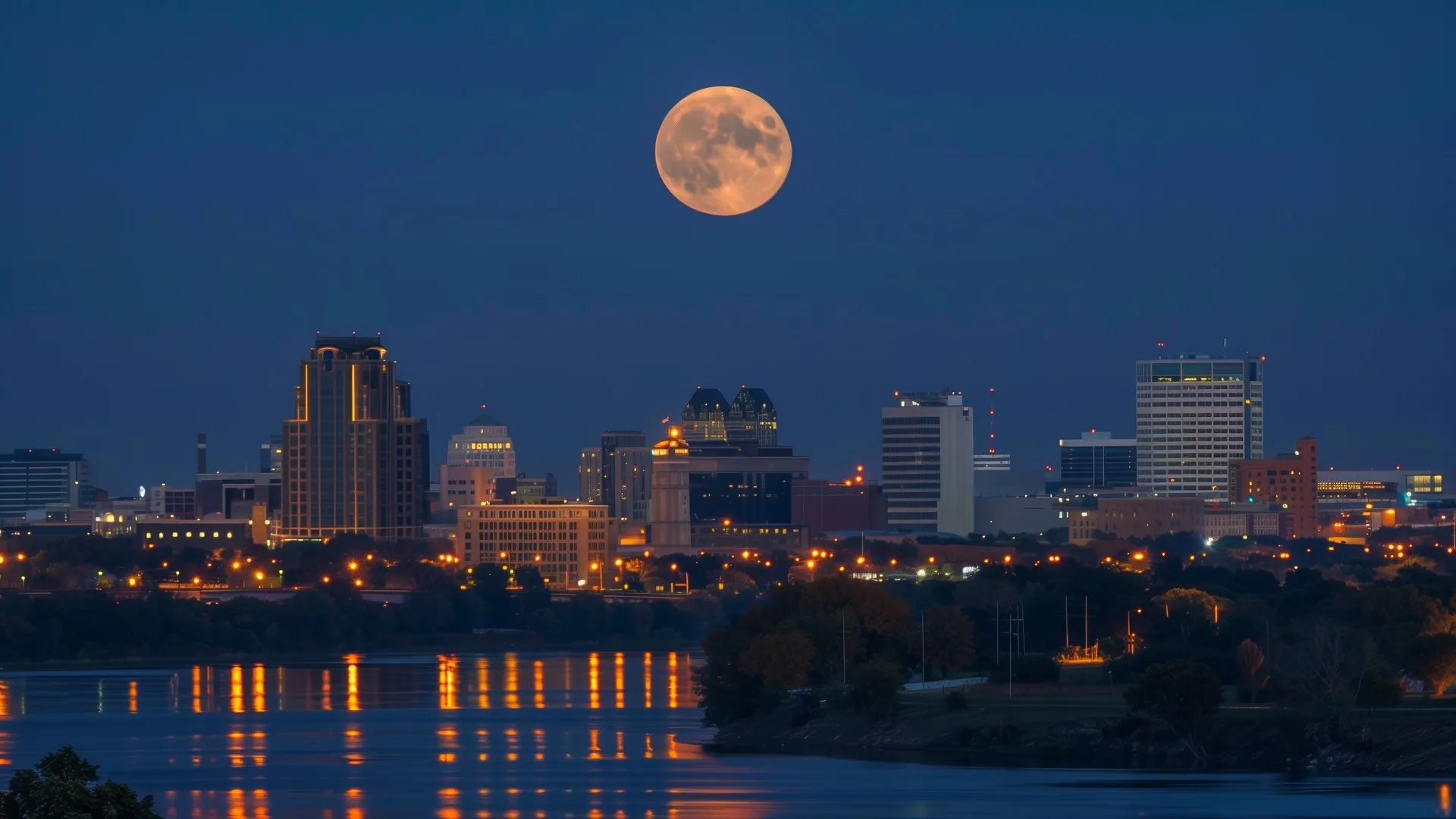 Skyline, City, Blue Hour, Moon, Computer Wallpaper, 4K Wallpaper