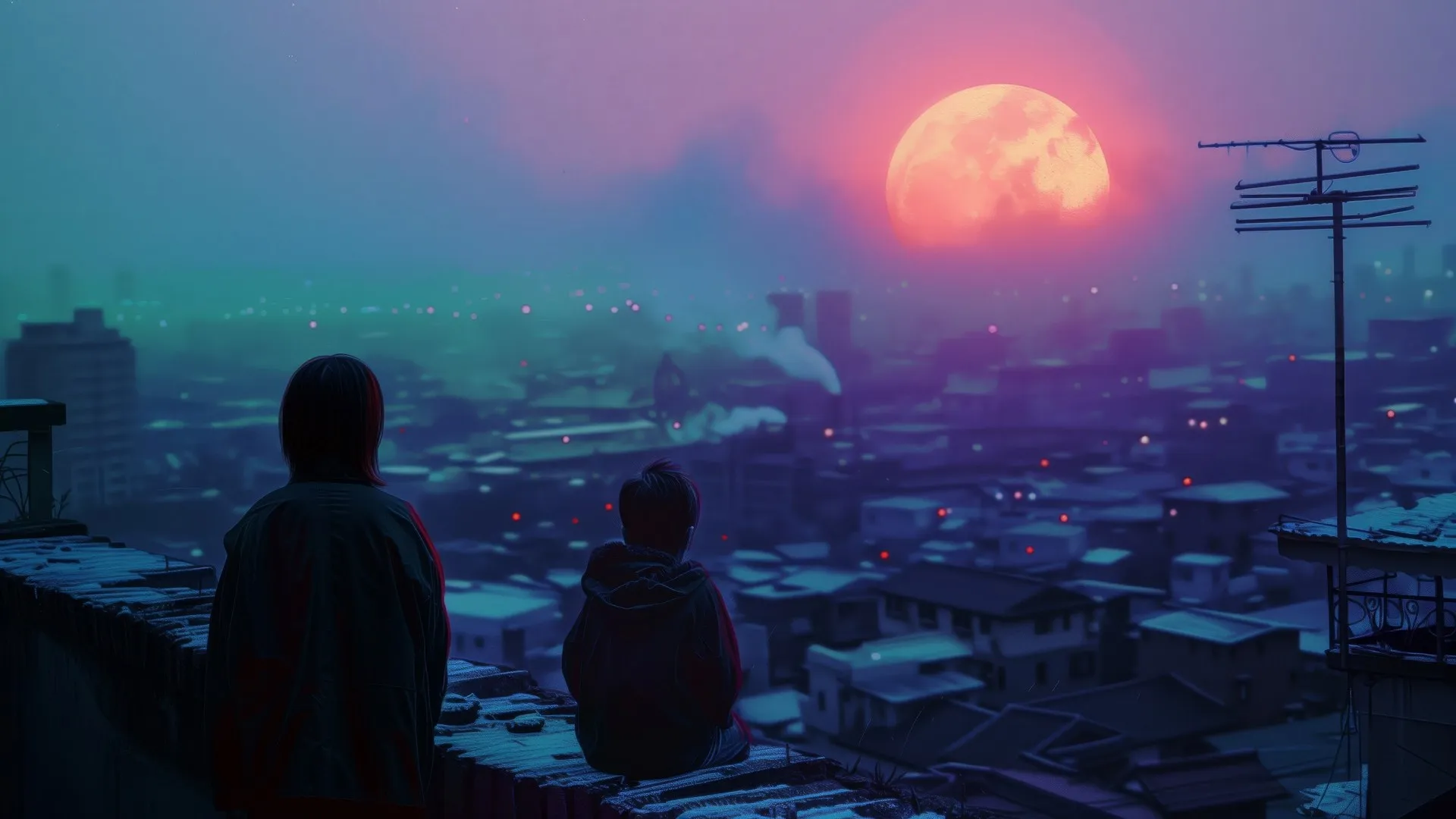 Children, AI Art, Cityscape, Clouds, Sun, Pollution, Blue, City, Computer Wallpaper, 4K Wallpaper