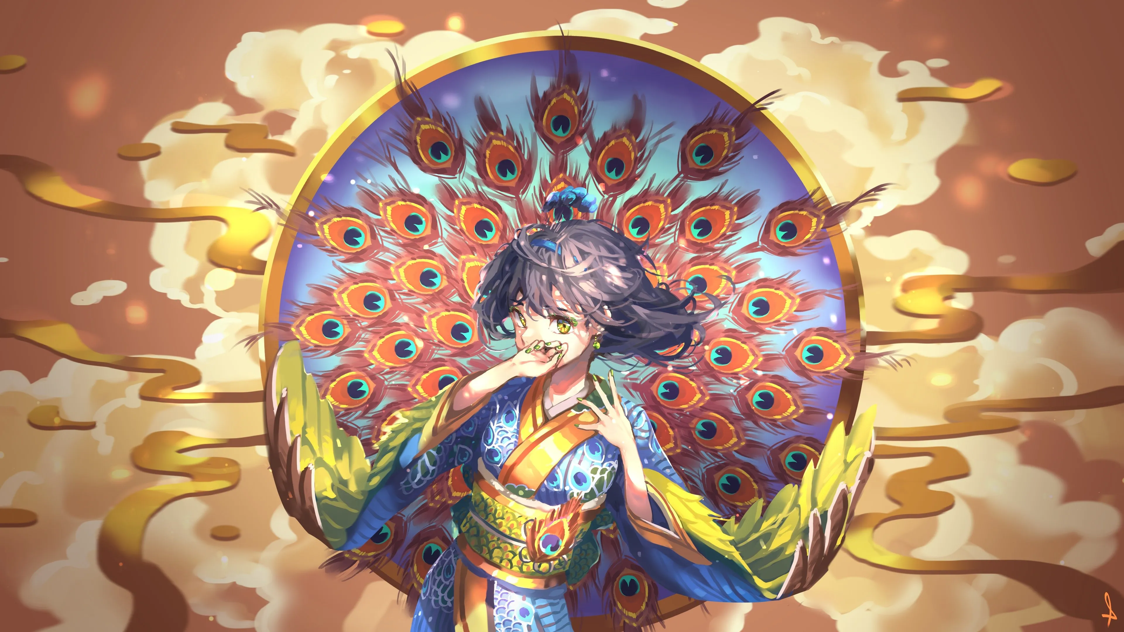 Fantasy Girl, Anime Girl, Peacock Feathers, Fantasy Art, Traditional Costumes, Anime, 4K Wallpaper