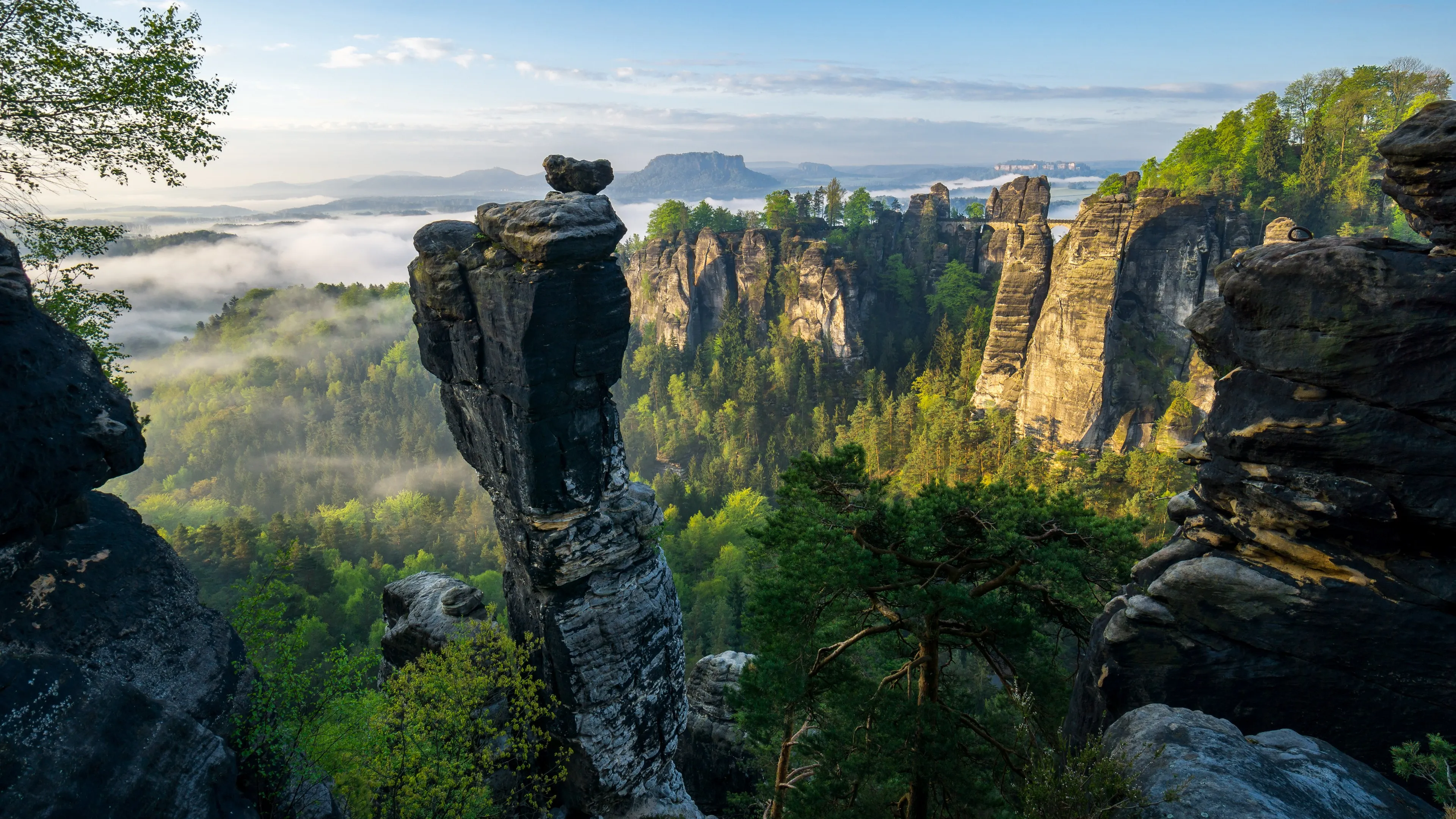 Rock, Forest, Nature, Trees, Park, Mist, Sky, Cloud 4K Wallpaper