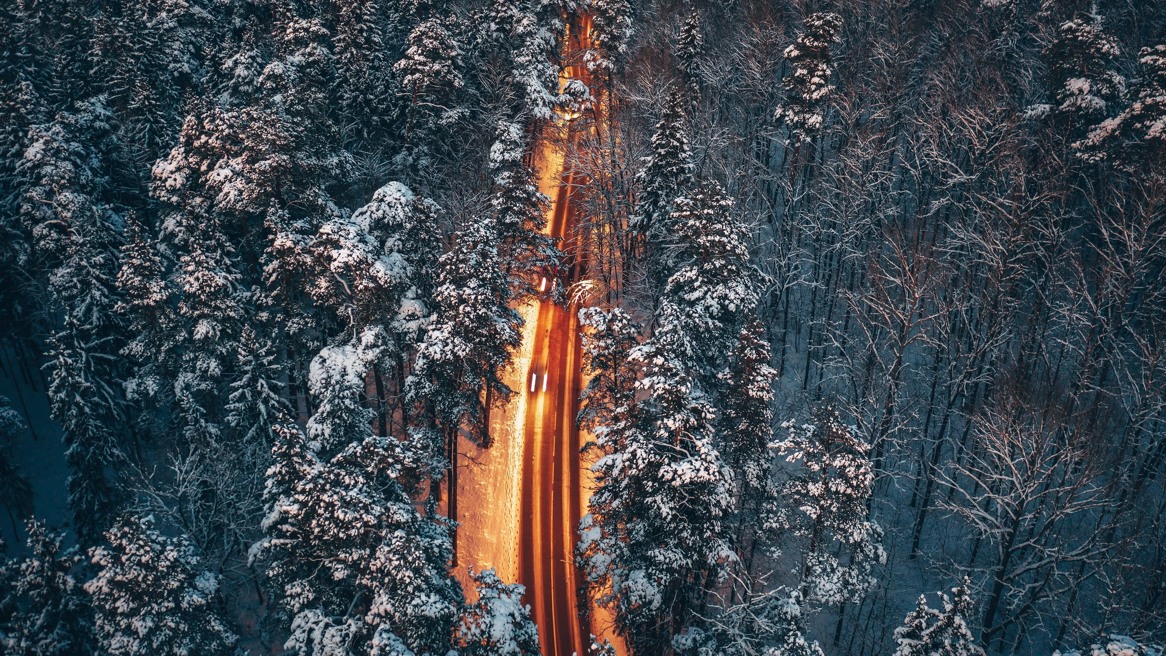 Road, Trees, Snowy Ground, Outdoor, Forest, Winter, 4K Wallpaper