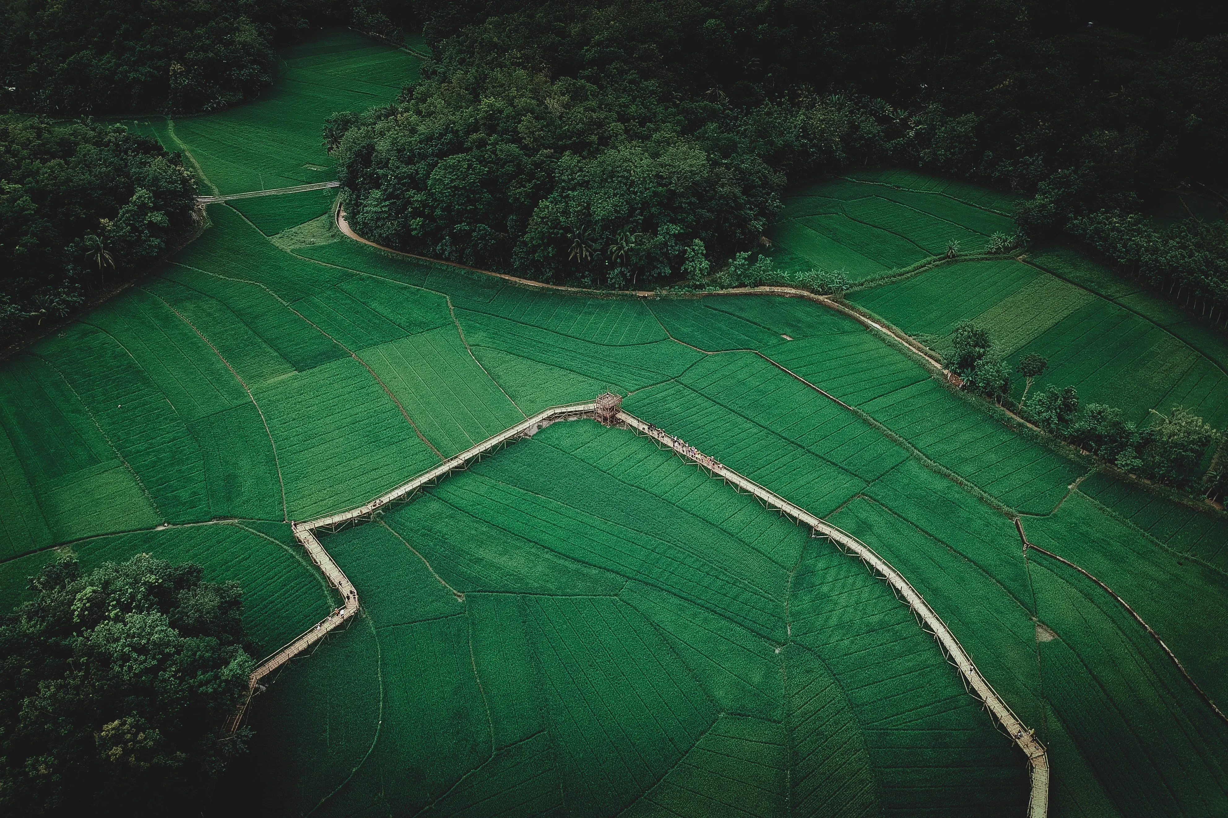 Scenery, Aerial View, Farm, Trees, Field, Grassland, Forest, Nature, Long Shot, Green, 4K Wallpaper