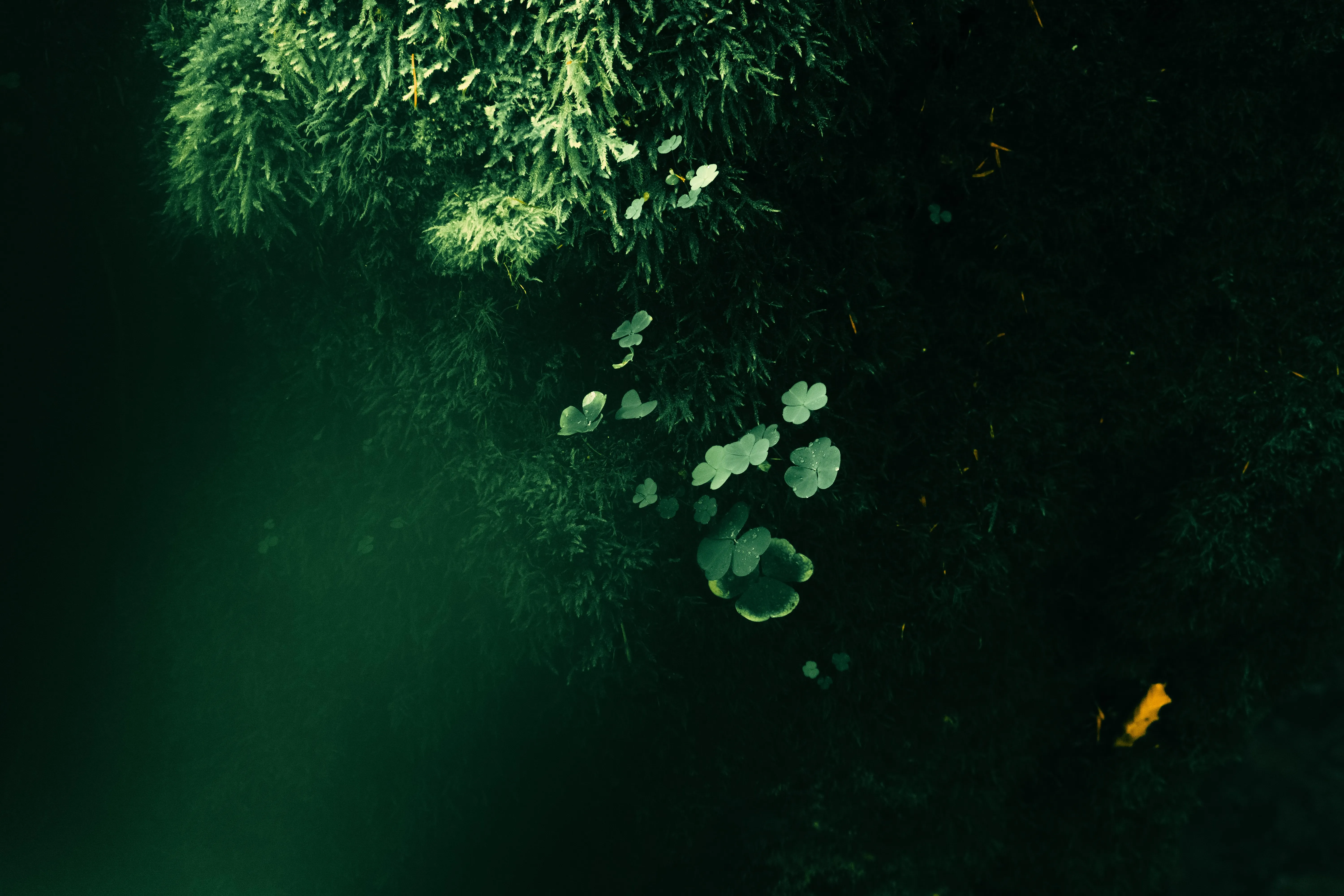 Natural Moss, Clover, Trees, Sunlight 4K Wallpaper