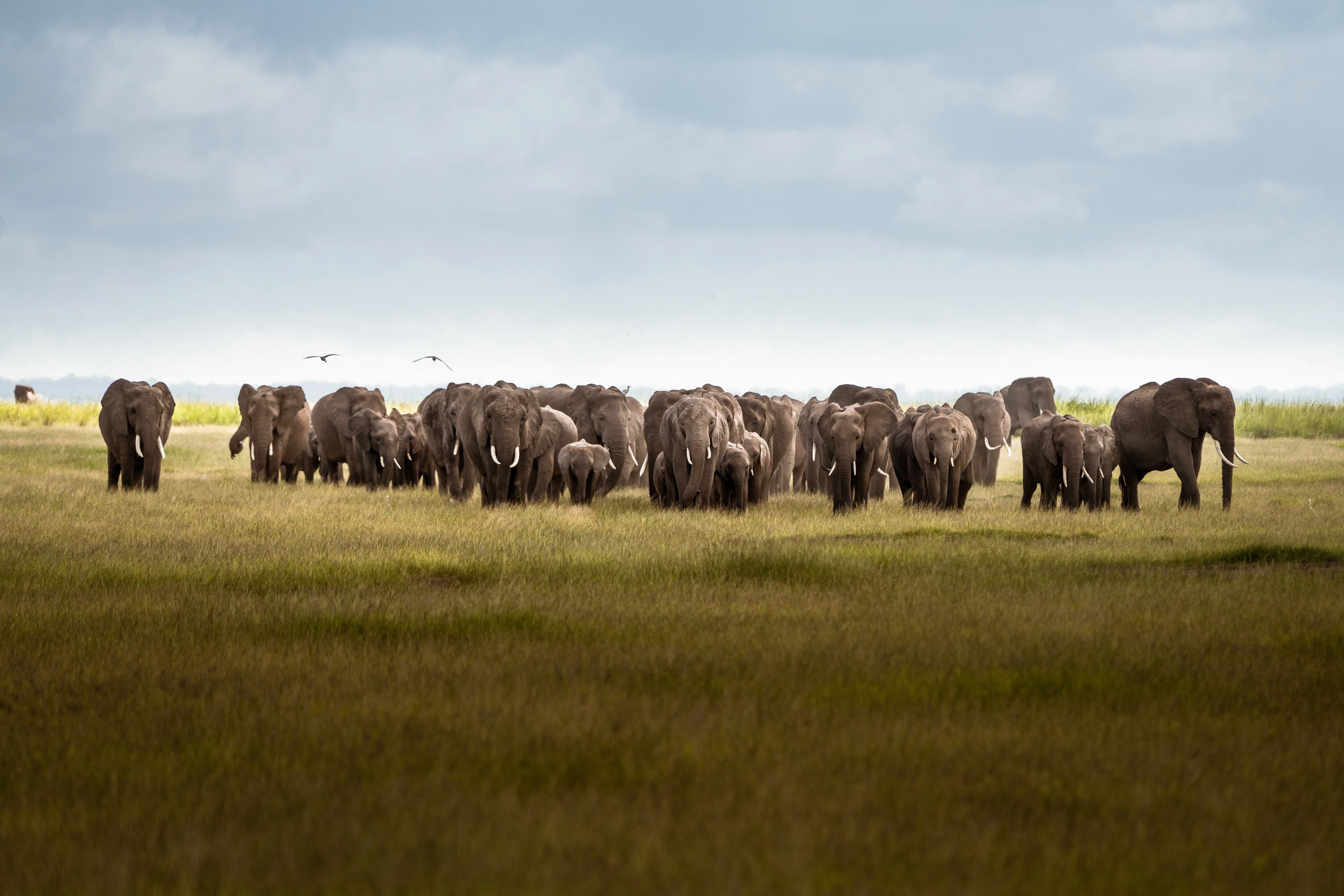 Nature, Landscape, Grass, Elephant, Birds, Cloud, Computer Wallpaper, 8K Wallpaper