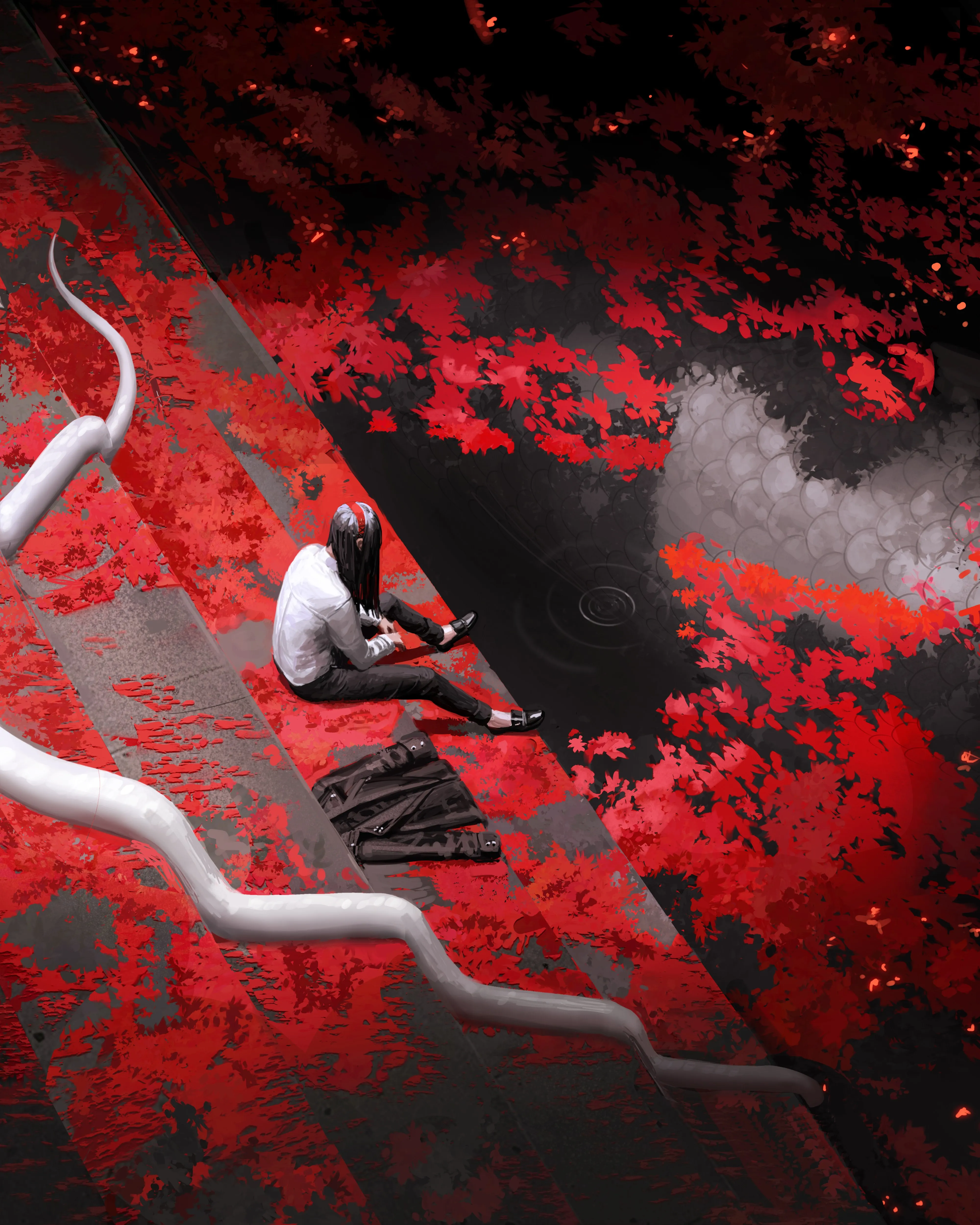 Woman, Original Character, Fantasy Art, Snake, Painting, Maple Leaf, Falling Leaves, Mobile Wallpaper, 4K Wallpaper